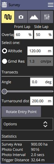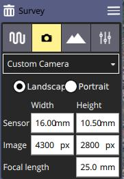 * Altitude - Selecting this value allows you to specify the altitude for the survey. The ground resolution will be calculated and shown for the specified altitude.