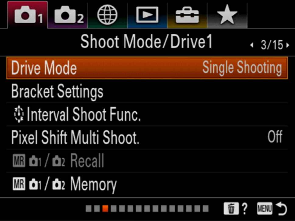 10. Set Drive Mode to "Single Shooting"
