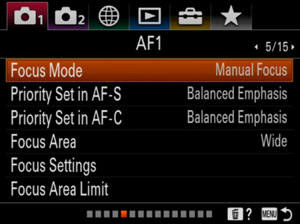 11. Set Focus Mode to Manual Focus to enable the Focus Ring