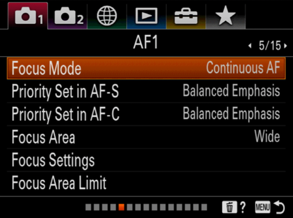 14. Click on the menu button again, and switch from Manual Focus to Continuous "Auto Focus"