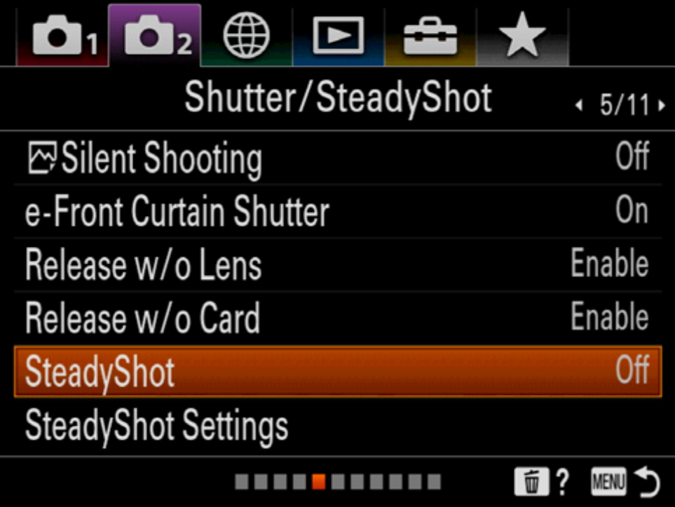 19. Set SteadyShot to "Off"