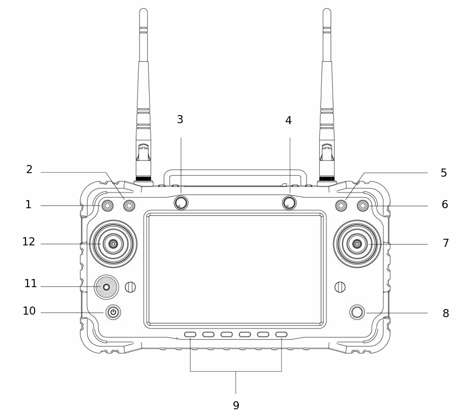 The vehicle can be controlled using the right-side joystick (7). To activate the joystick control, switch the flight mode switch (1) to POSITION mode (UP). In this mode, the vehicle will fly in a straight line at its current altitude until a joystick command is received.