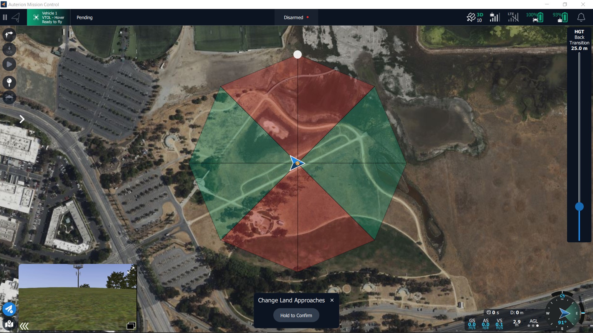 The operator can plan a takeoff and landing from the Fly View by selecting sectors that are free of obstacles at the approach altitude.&#x20;