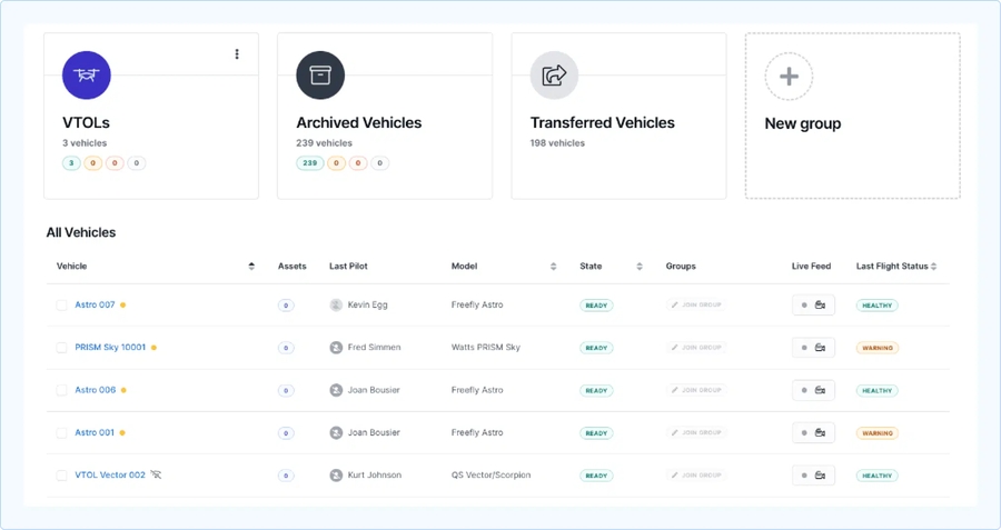 Keep track of payloads, parts, and other peripherals, see asset usage per flight, lifecycle state, and proactive measures.