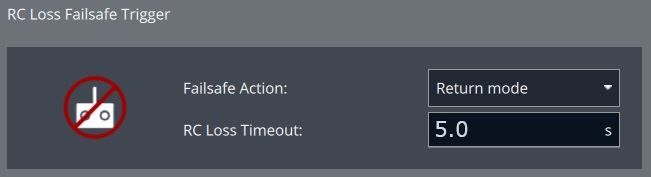 When flying in *Altitude* mode (manual control), and the connection with the vehicle is lost, the system will initiate the *Return mode* after 5 seconds regardless of the settings in the *Data Link Loss Failsafe Trigger*.