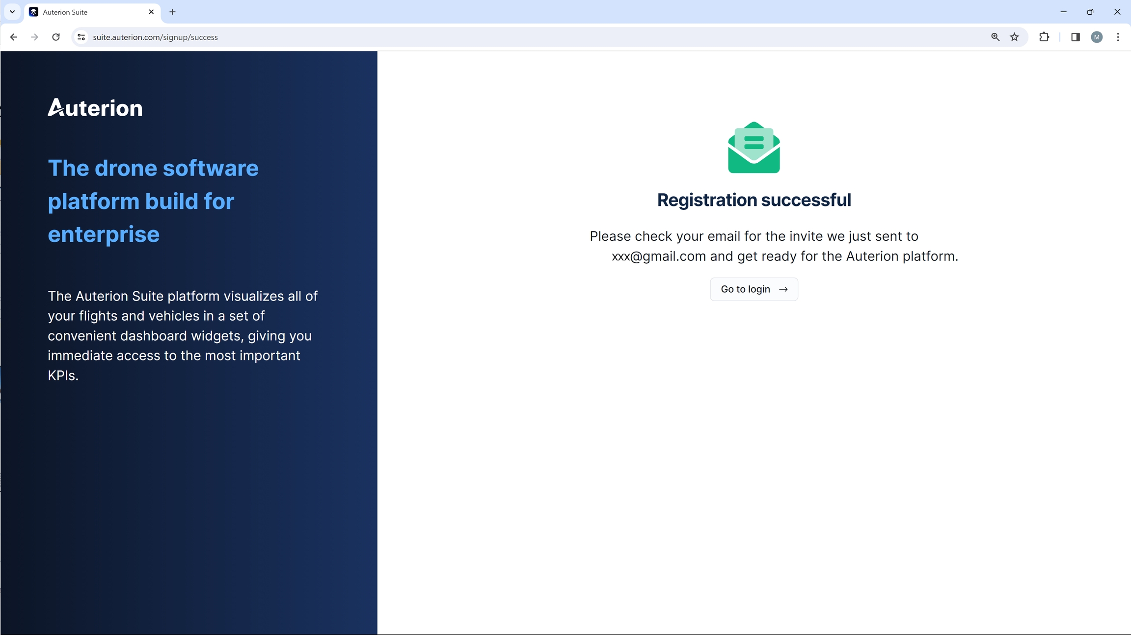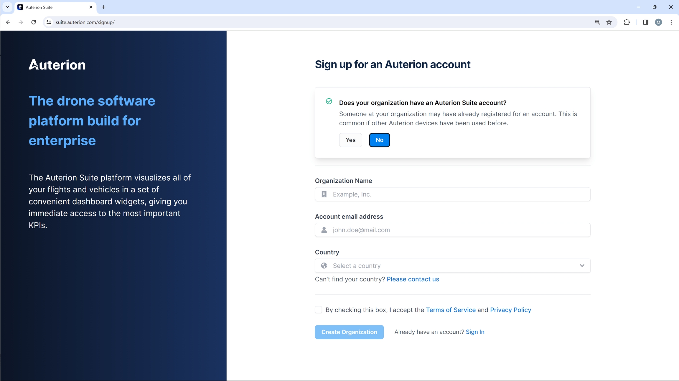 To use Auterion Suite you need to create an account. Ignore the following steps if you already have an Auterion Suite account.