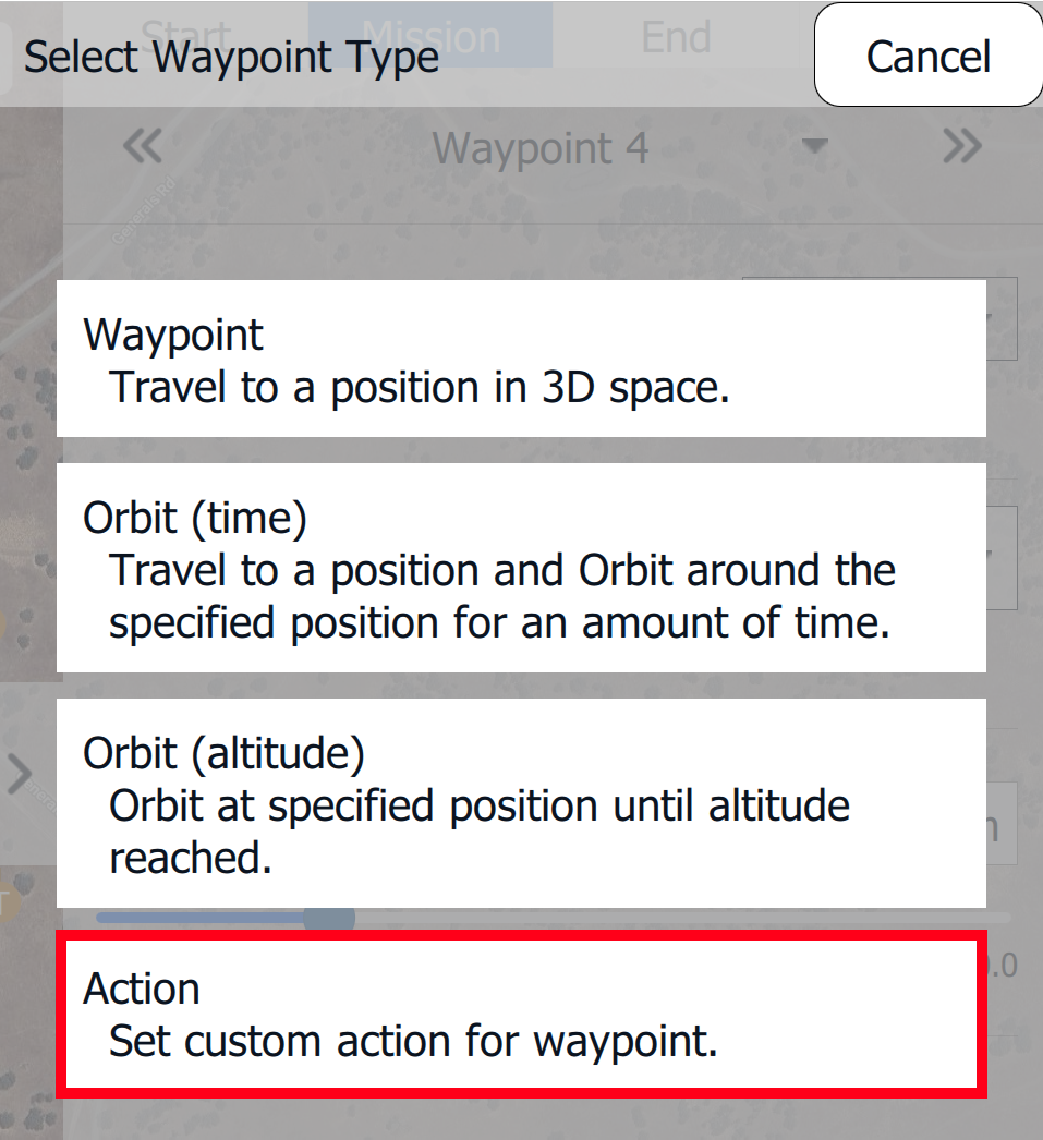 A menu will open, allowing you to Select a Waypoint Type, choose Action.