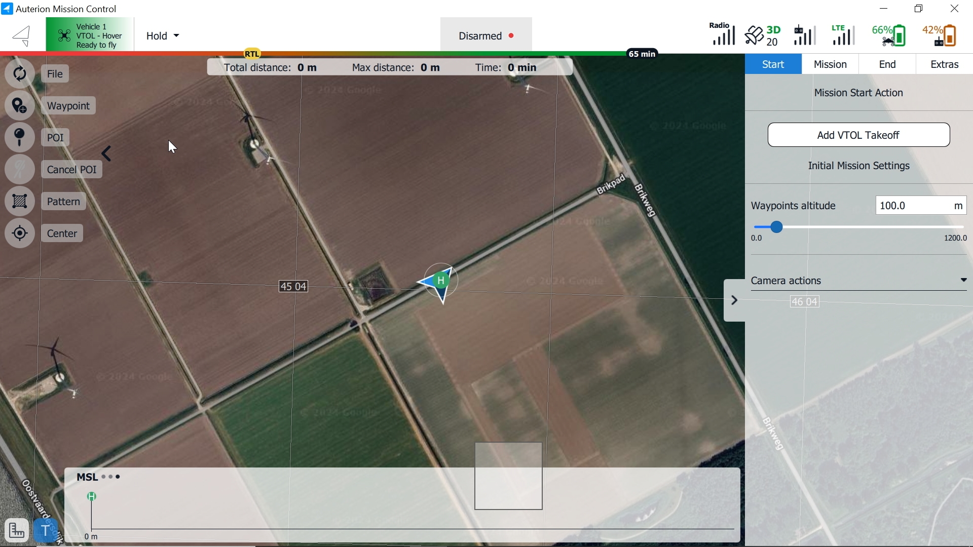 The Plan View is used to plan autonomous missions for your vehicle. Once the mission is planned and uploaded to the DeltaQuad Evo, you switch to the Fly View to perform the Pre-flight Checks and execute the mission.