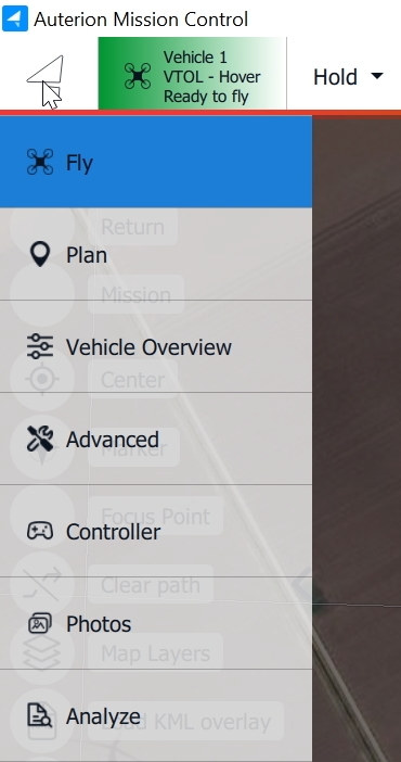 Fly View is used for all operations related to monitoring and controlling vehicle flight. It is the default view displayed on application start.