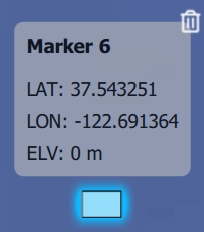 To delete a marker, select it on the map and click on the small Trash Bin.