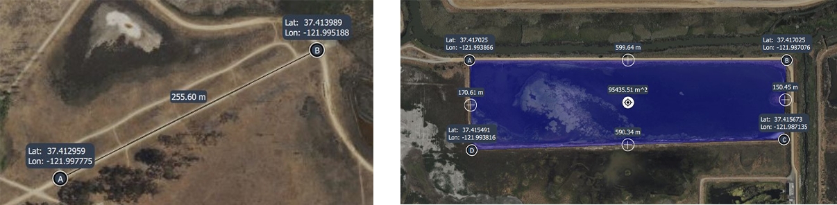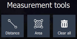 The distance between two points can be measured, or the area can be calculated as a selectable polygon. Selecting Clear All will delete all Measurement Tools on the map.