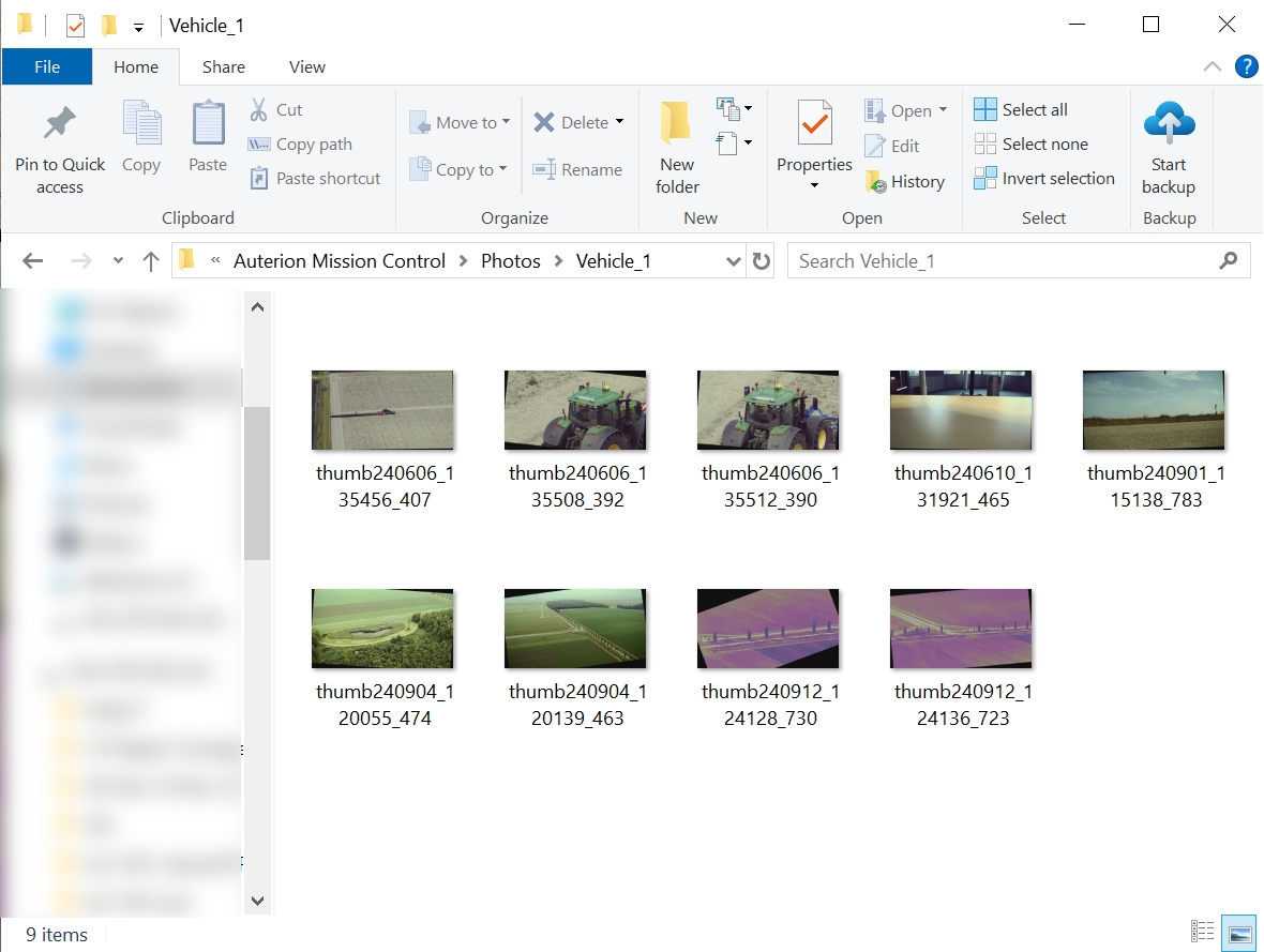 In the Photos tab, all snapshots taken during a mission are displayed for easy review.