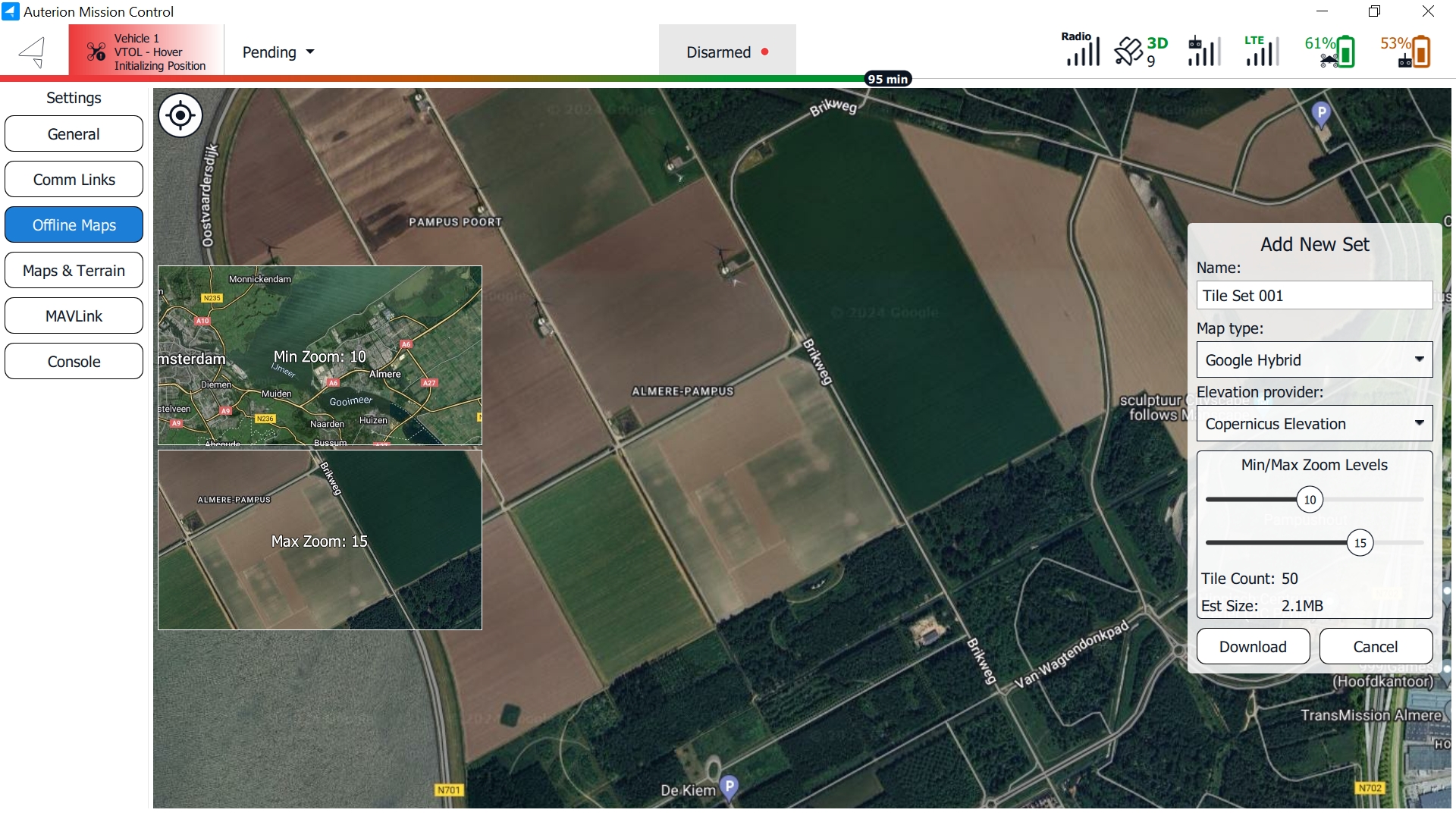 When you select Add New Set at the top of the screen, you can choose map tiles for download.