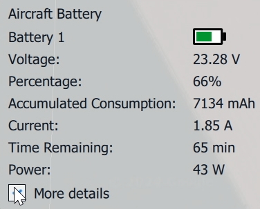 When clicking on the icon, more information becomes available, such as Voltage, Percentage, Accumulated Consumption, Current, Time Remaining, and Power.