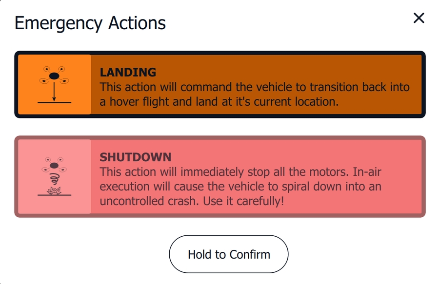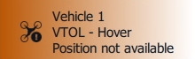 Displays the current flight mode (VTOL Takeoff, Hold, Altitude, Position, Return, Land, Mission) Select to enable Altitude or Position mode.