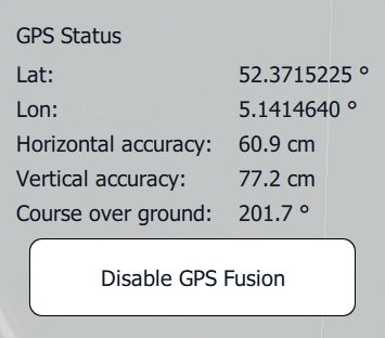 Displays information about the GPS lock and count. When clicking on the icon, more information becomes available: Geolocation, HDOP, VDOP, and Course over Ground.