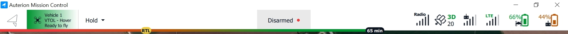 At the bottom of AMC´s top bar, you will find a bar that represents the remaining flight time of the vehicle. This same bar also visualizes the RTL point, indicating where the vehicle will perform an autonomous Return to Launch due to a Battery Failsafe.