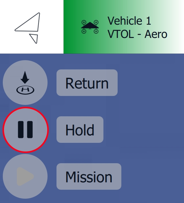 When the Hold command is issued, the vehicle will maintain its current position and altitude. In fixed-wing mode, it will circle the current location with a 100-meter radius.
