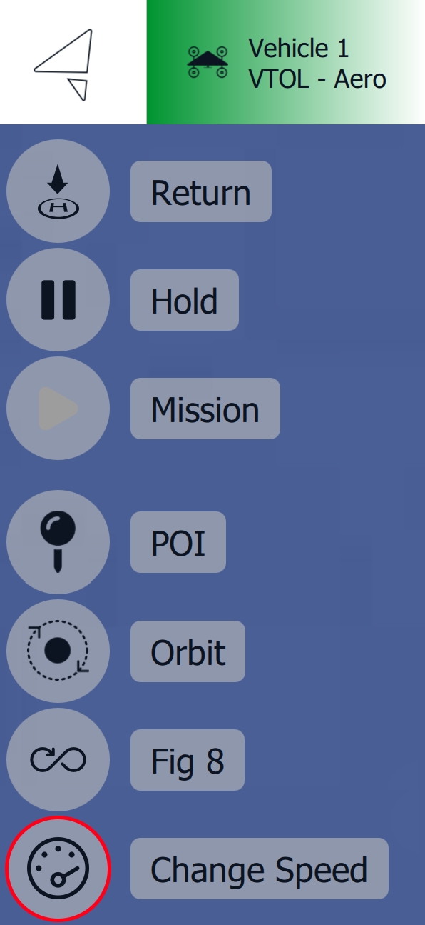 The Change Speed Command adjusts the vehicle's airspeed and can be executed using the slider on the right side of the screen.