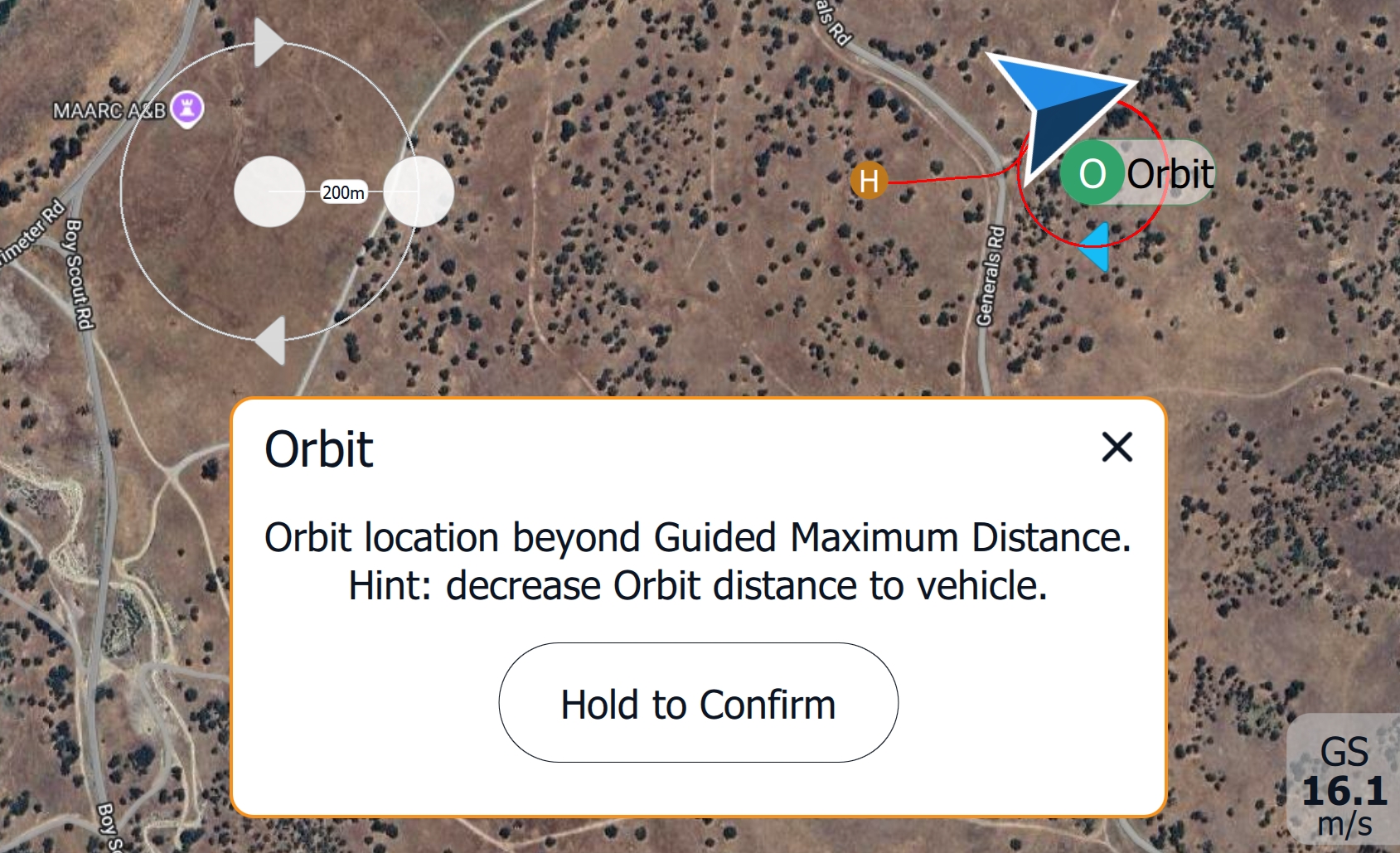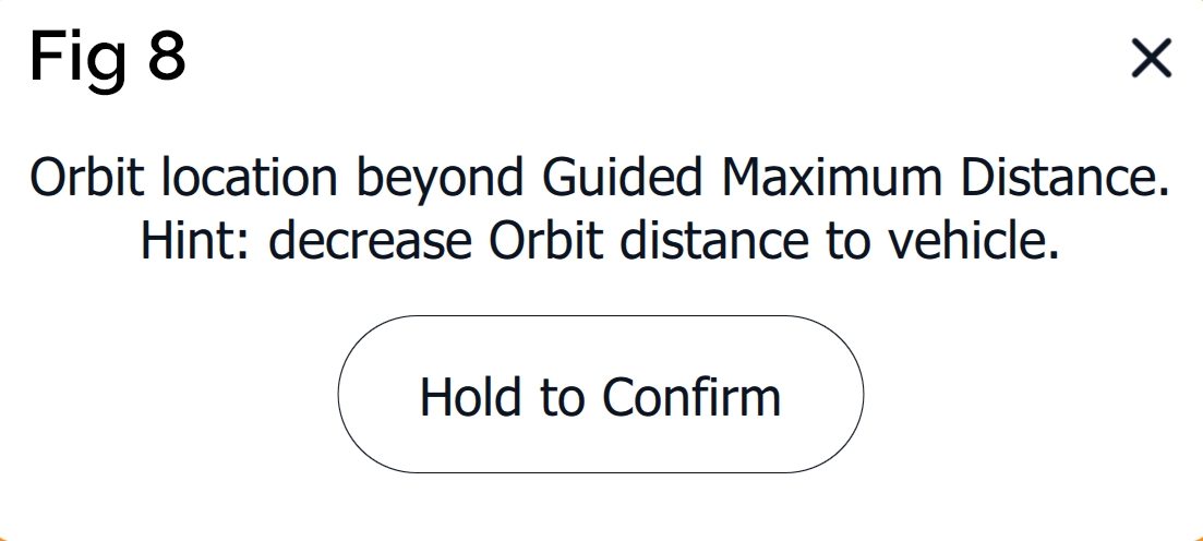 If the new orbit is placed beyond the set Guided Maximum Distance, the following warning will appear.
