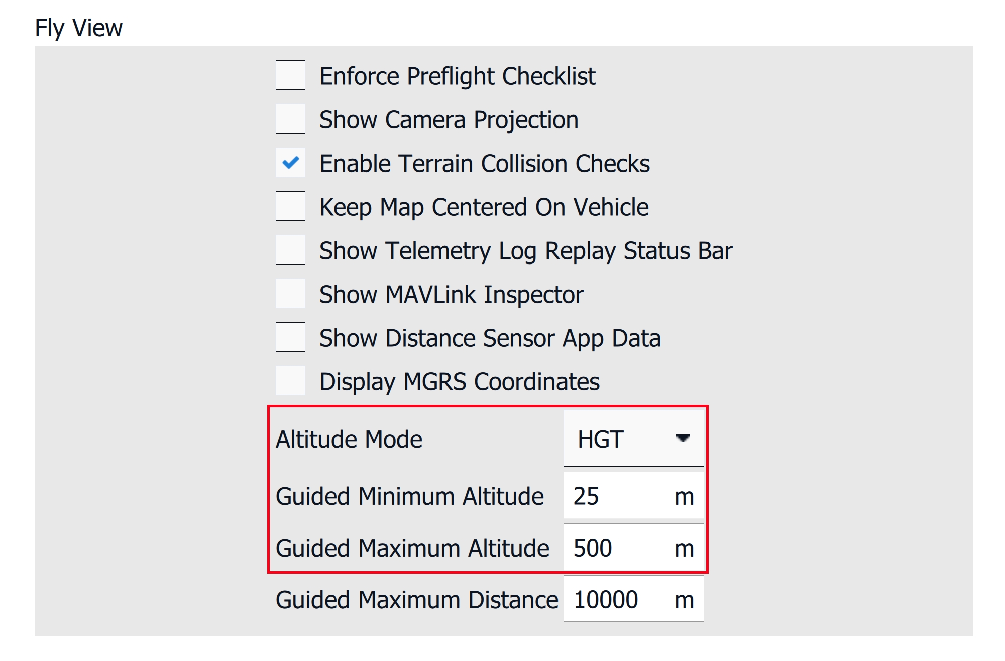 Always set the Return to Launch altitude (HGT) higher than any obstacles in the mission area, such as trees or man-made structures. The Return to Launch altitude (HGT) is referenced to the takeoff location. For more information, please review the Safety Features here.