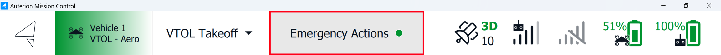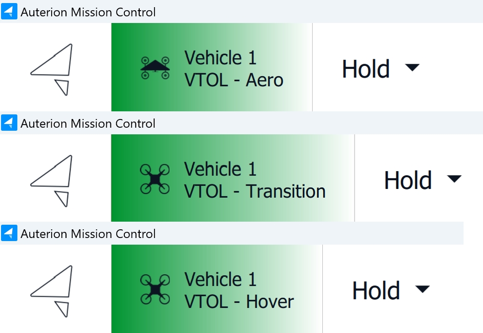 The active VTOL mode is displayed in the Vehicle Status Indicator on the left side of AMC's Top Bar.