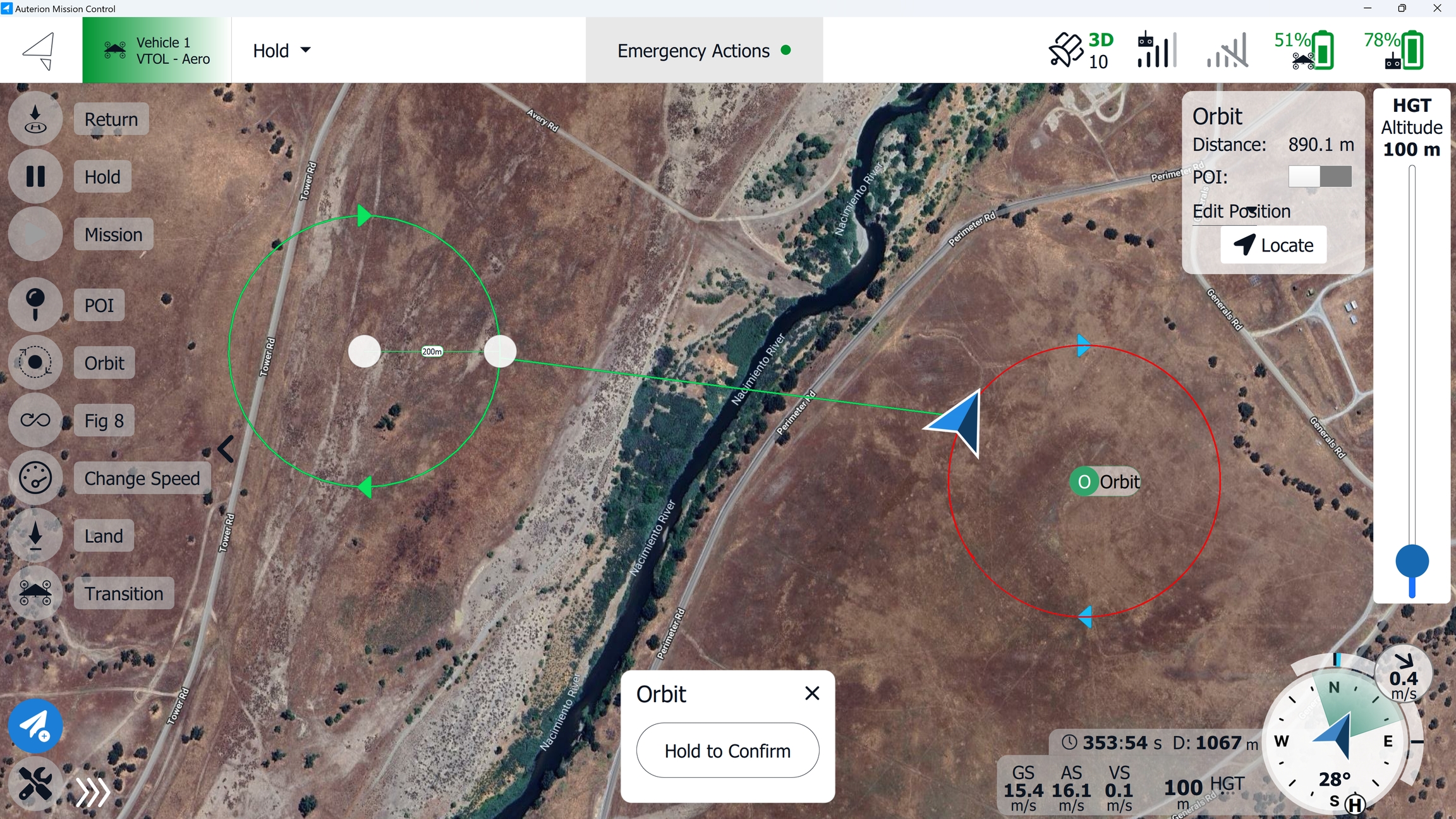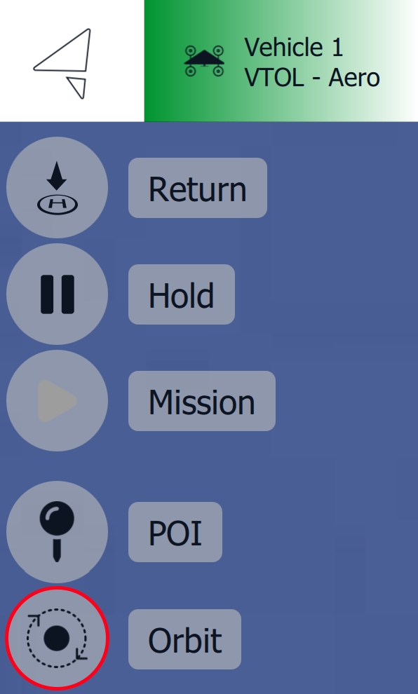 Once the vehicle is in fixed-wing mode, the Orbit command can be issued. Click anywhere on the map to select the orbit location.