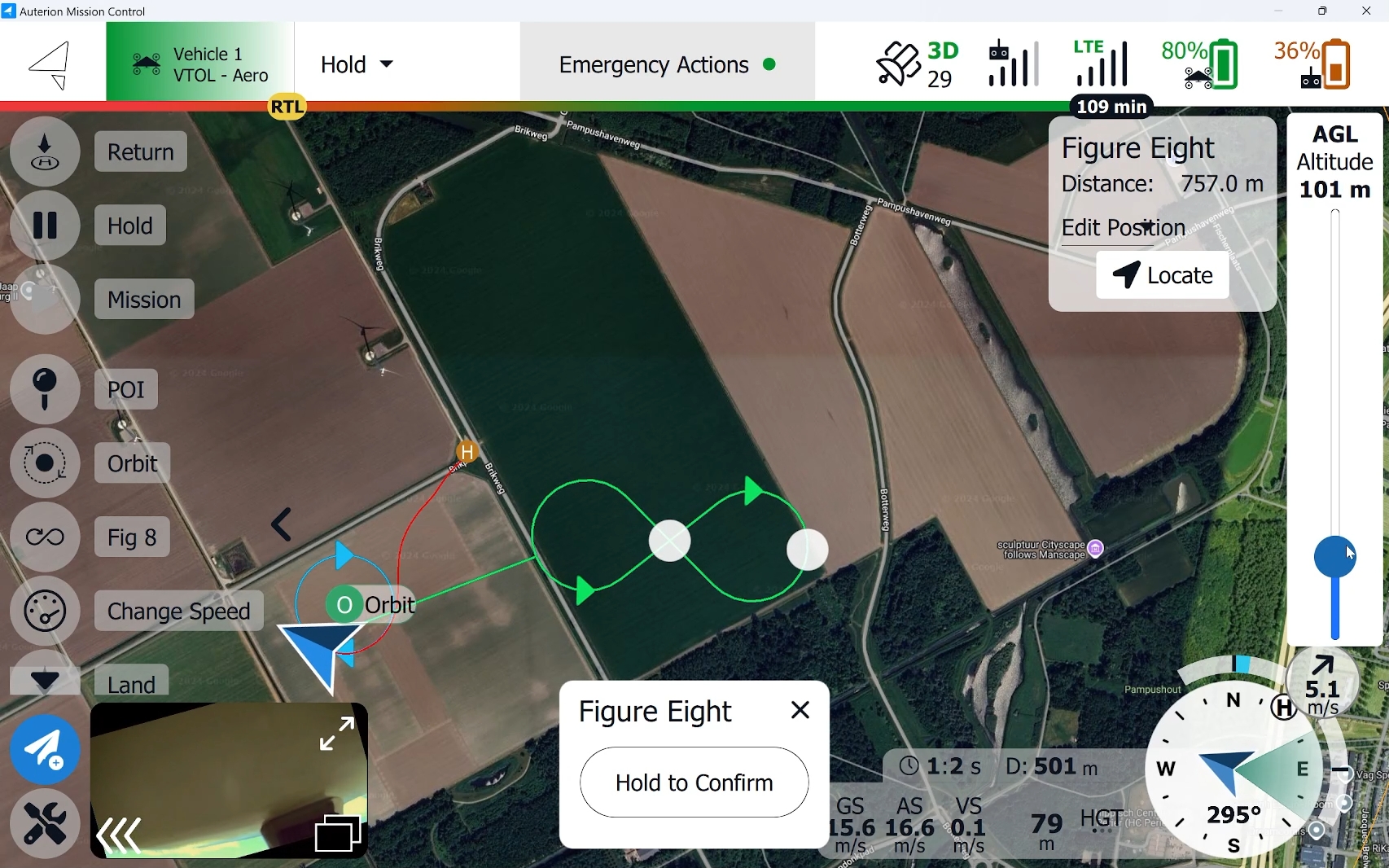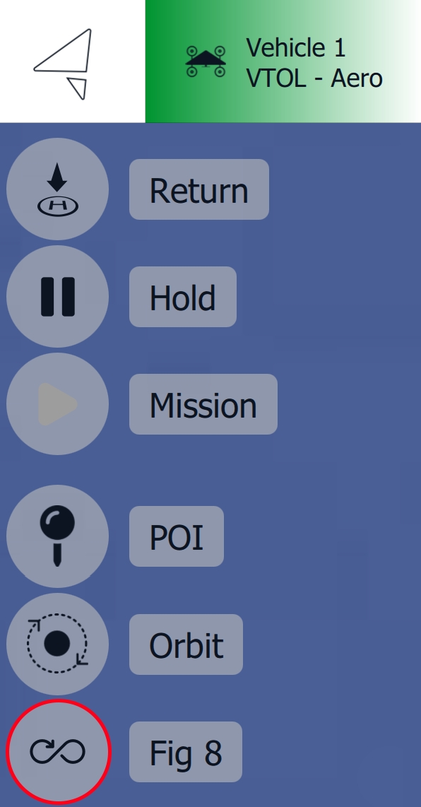 Once the vehicle is in fixed-wing mode, the Fig 8 command can be issued. Click anywhere on the map to select the orbit location.