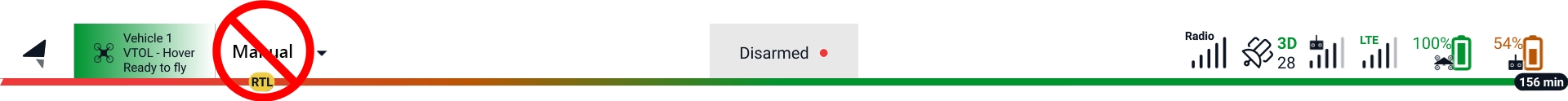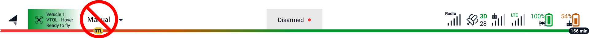 If a loss of connection occurs during repositioning the vehicle with the Orbit and Fig 8 command, the Data Link Loss Failsafe Action will be activated after the timeout. When disabled the vehicle will remain in Hold mode until the data link is re-established. If the data link cannot be restored, the vehicle will remain in Hold mode until the Low Battery Failsafe Trigger activates. If the failsafe action is set to Return mode, the vehicle will return to the designated landing location.