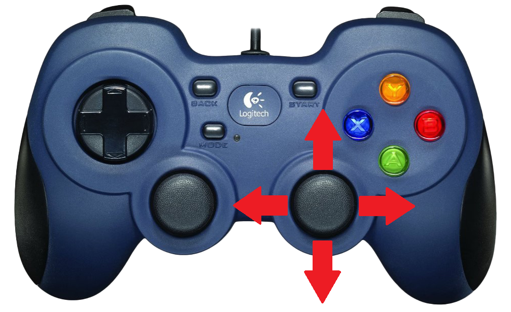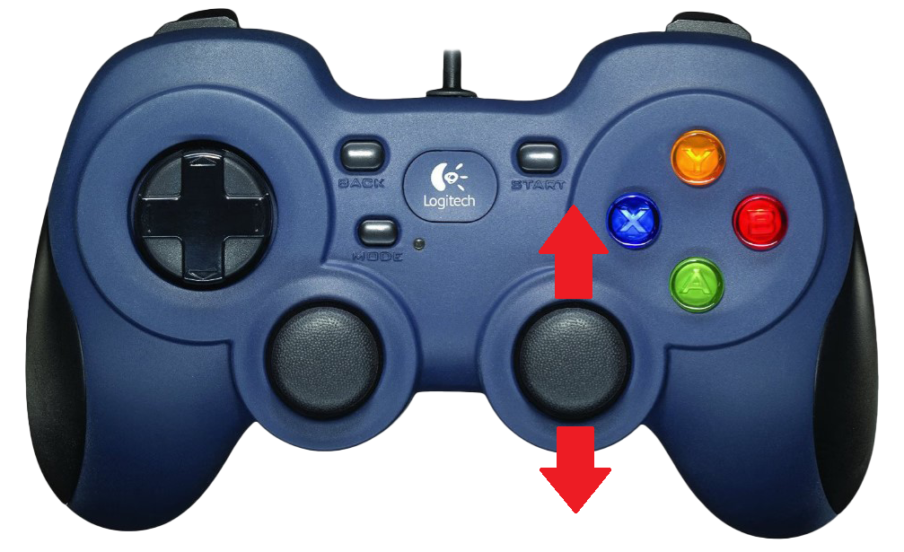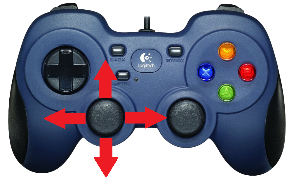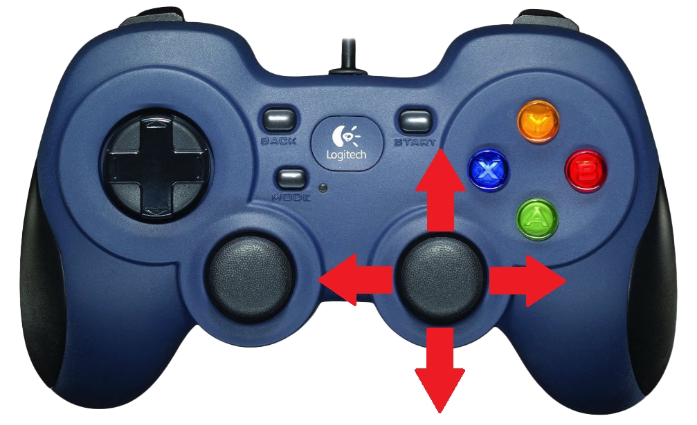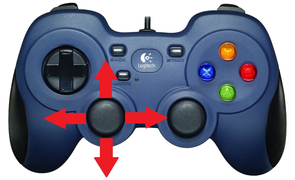 The right joystick controls the position of the vehicle. Moving this joystick, forward, backward, left, or right changes the position of the vehicle relative to its current heading.
