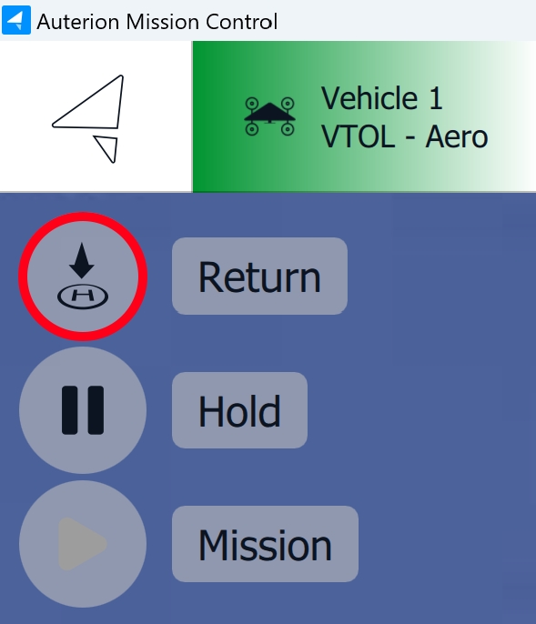 To land the vehicle, click on the Return command on the left side of the screen.