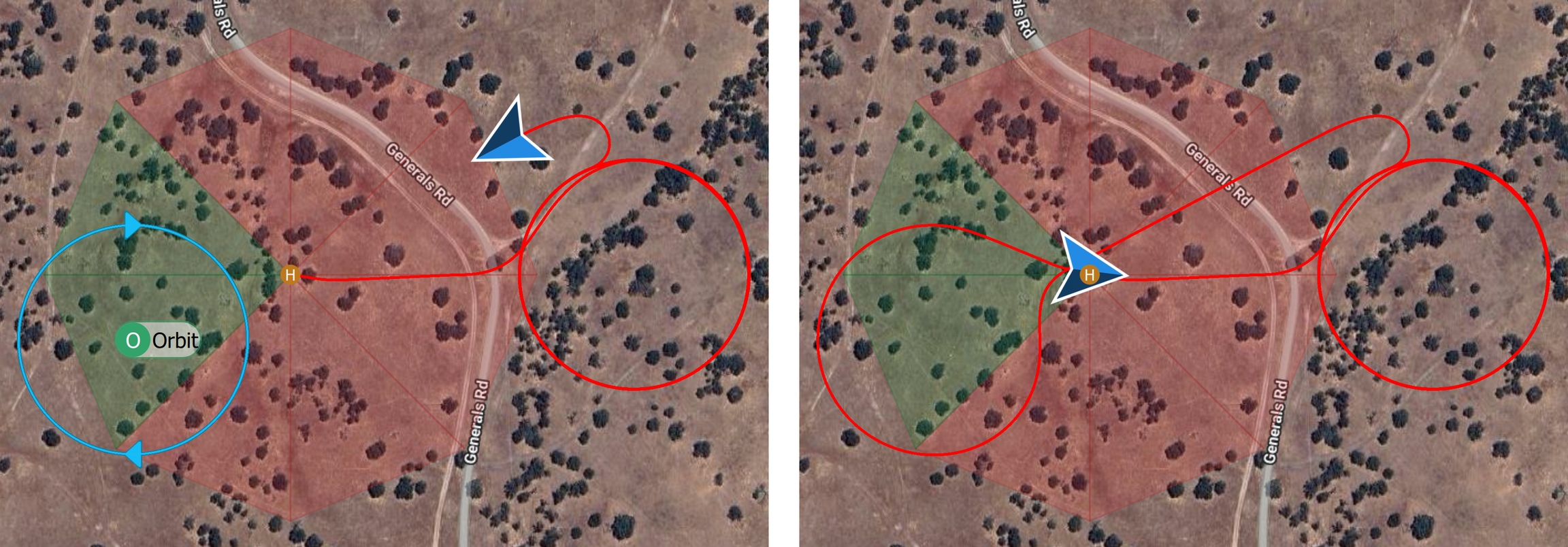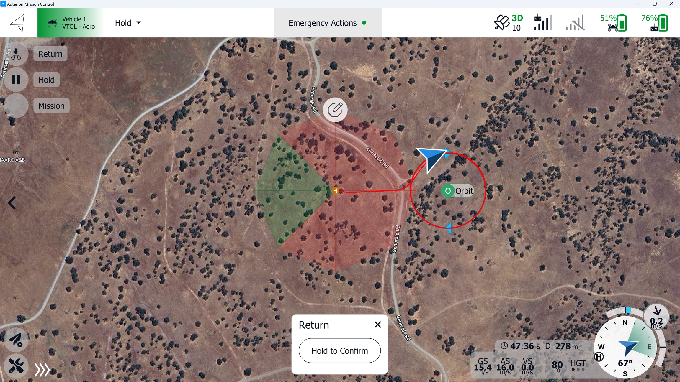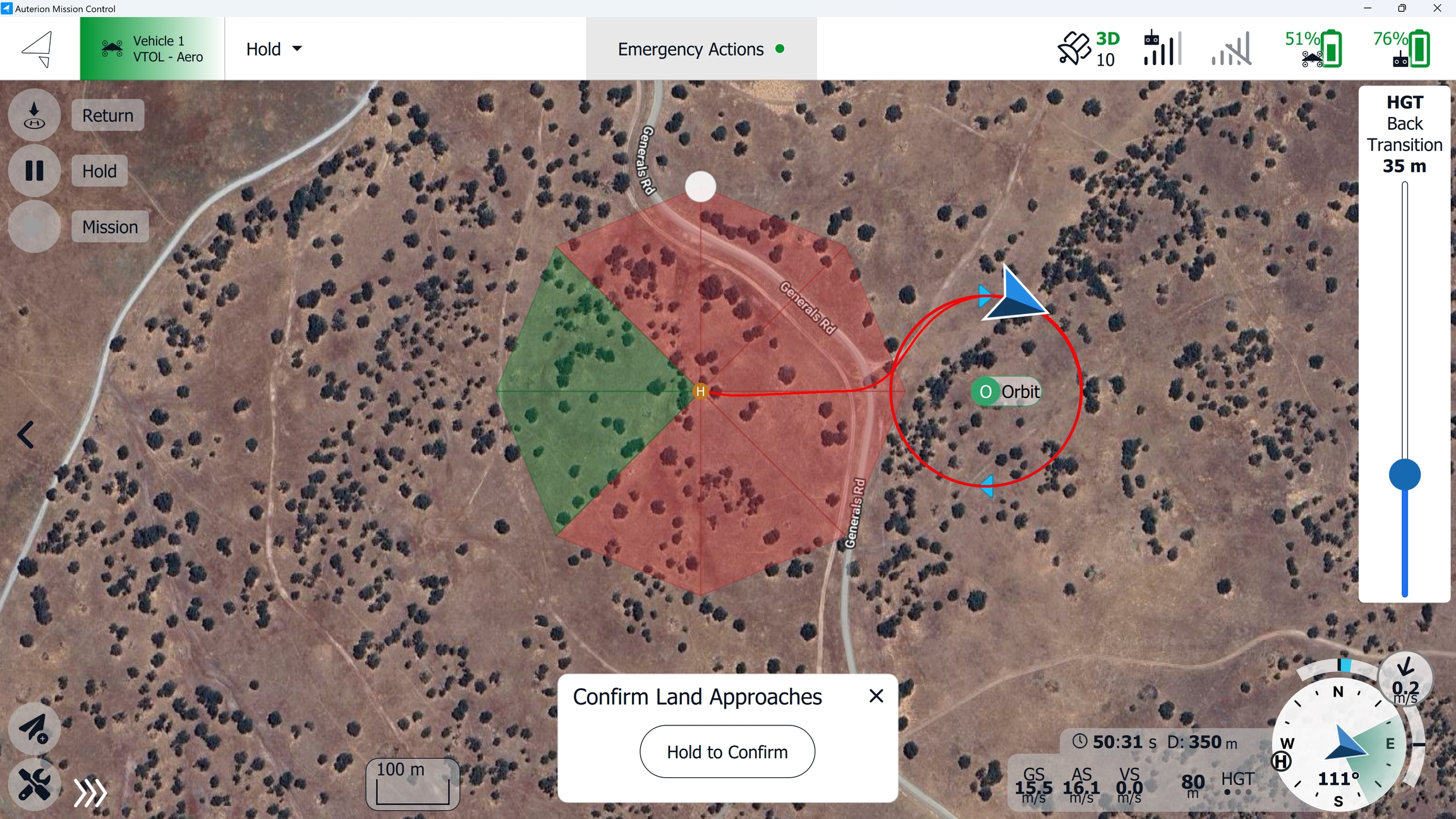 The vehicle will automatically place the Loiter Down item within the available sectors. It will then perform the back transition to Multirotor Mode into the wind, or as close as possible to this direction, depending on the limitations of the selected sectors.