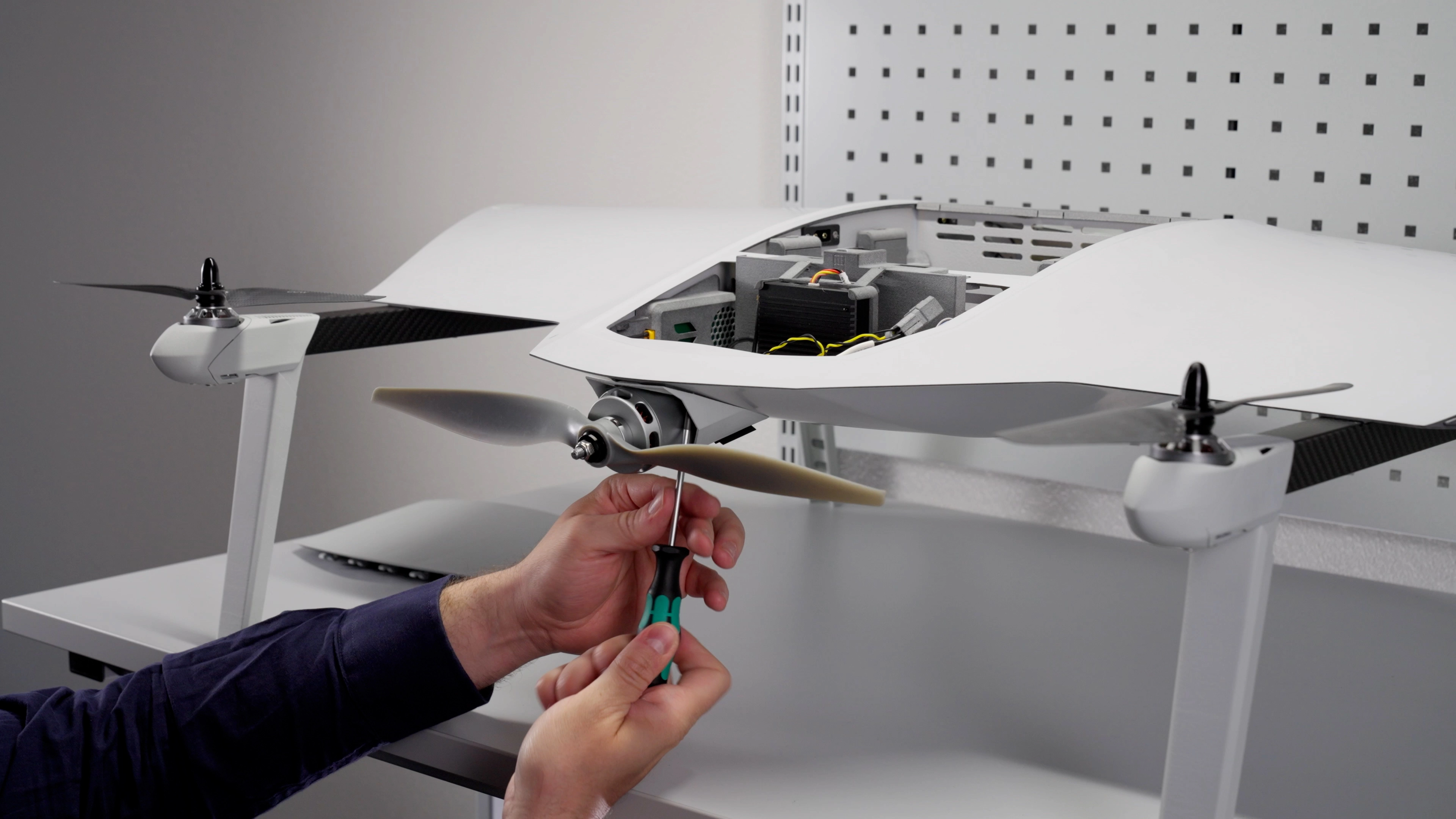 13. To install the new Pusher Motor Pod, guide the cable of the Pusher Motor Pod through the fuselage opening.