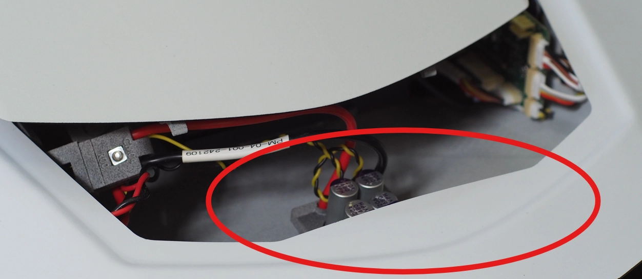 3. On the lower left side of the avionics bay, you will find the gray Pusher Motor Pod connector. Unplug the connector.