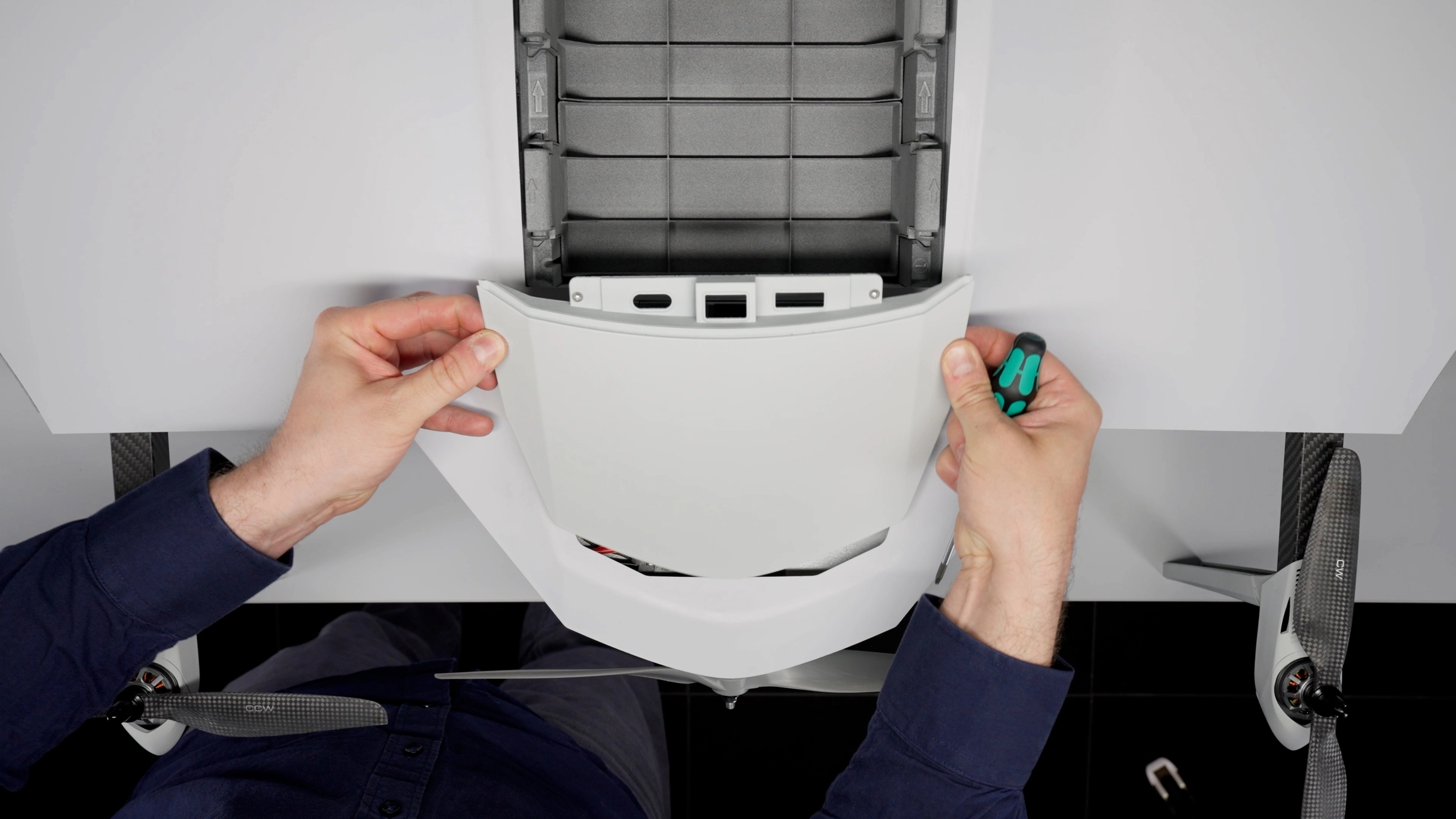 For the installation of the Pusher Motor Pod, four screws are required: two short screws for the top of the Pusher Motor Pod and two long screws for the bottom.