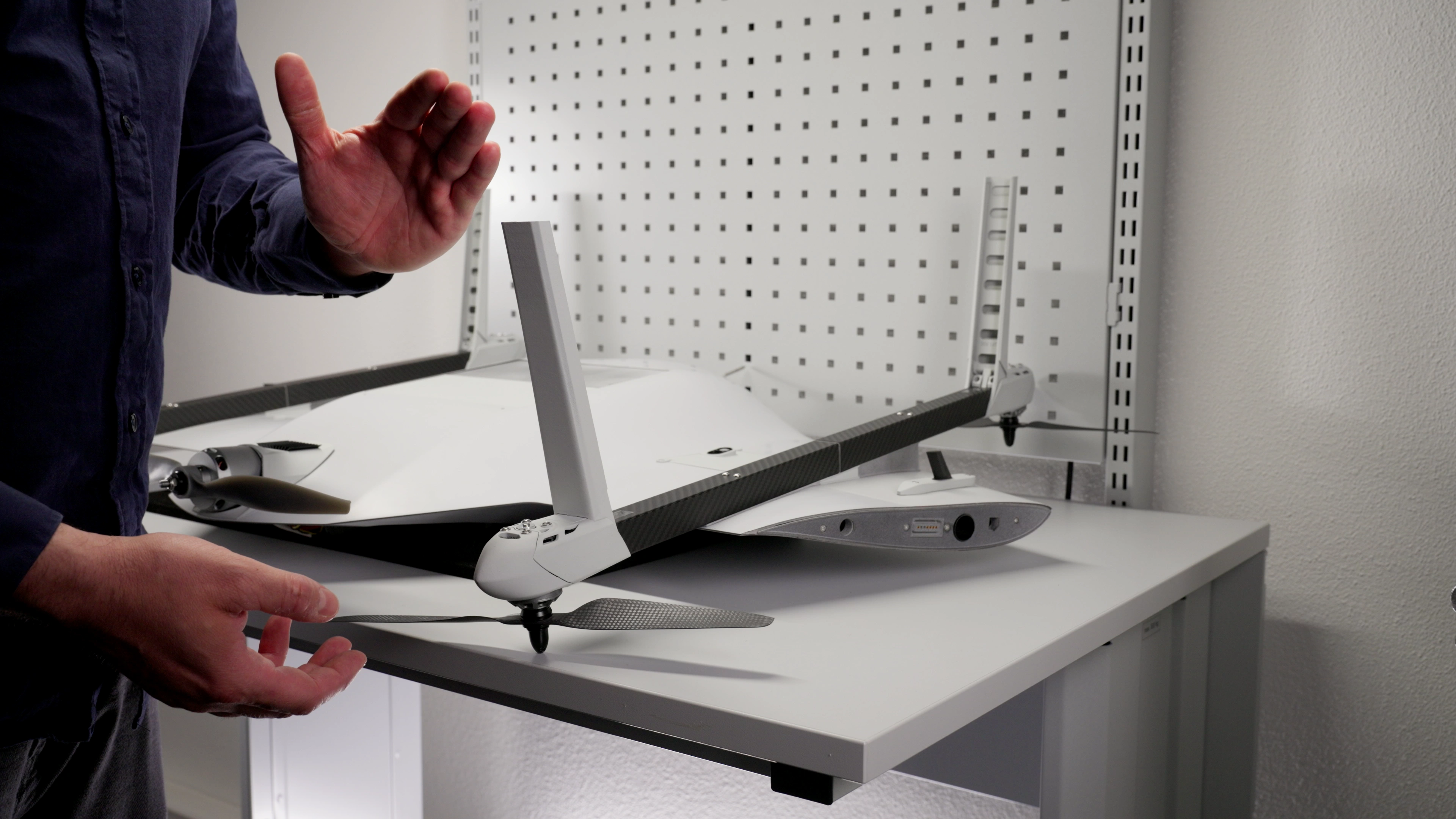 5. Hold the opposite VTOL arm with one hand for stabilization.