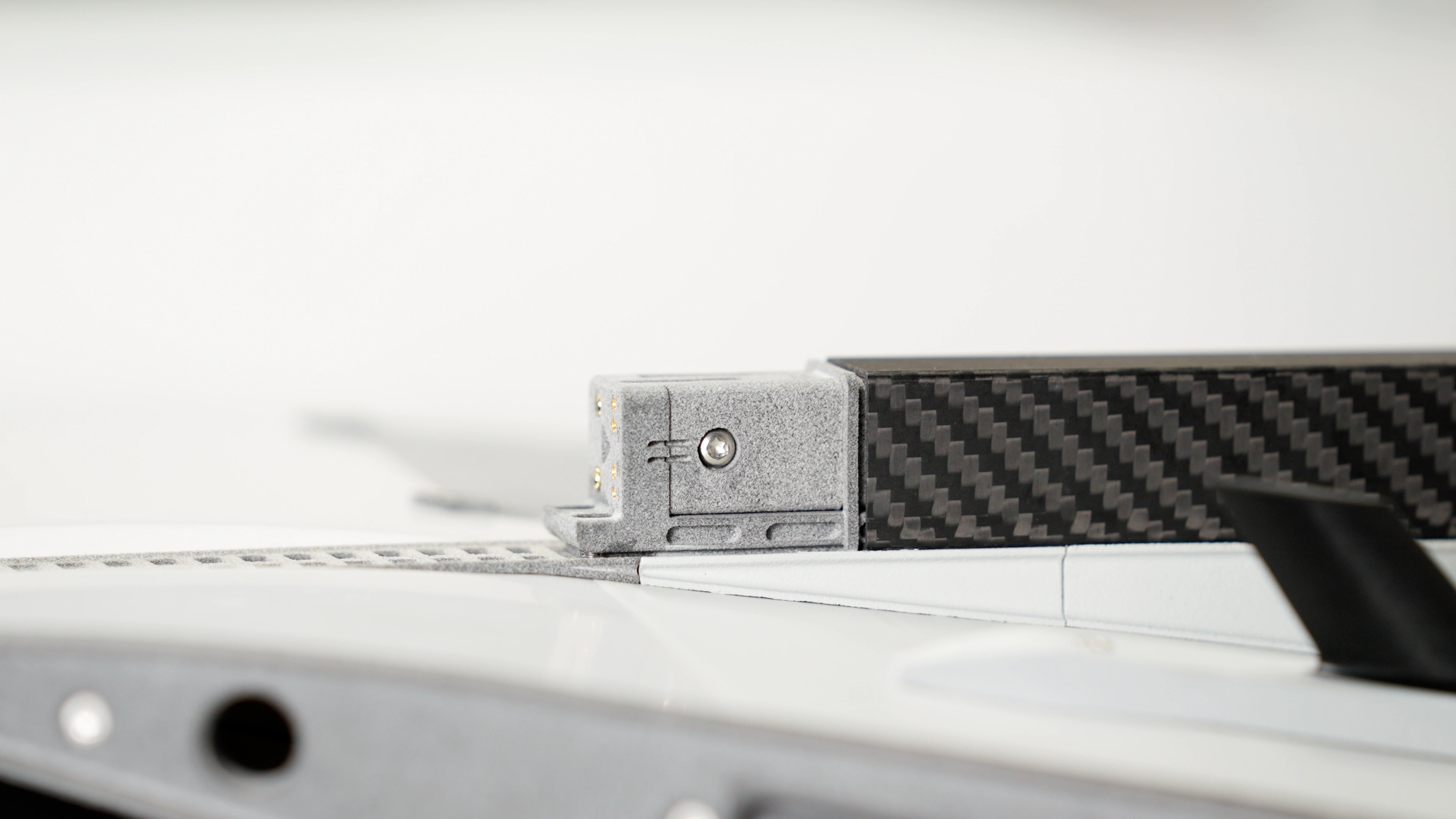 The T-section mount has an alignment groove for the VTOL arm on each side.