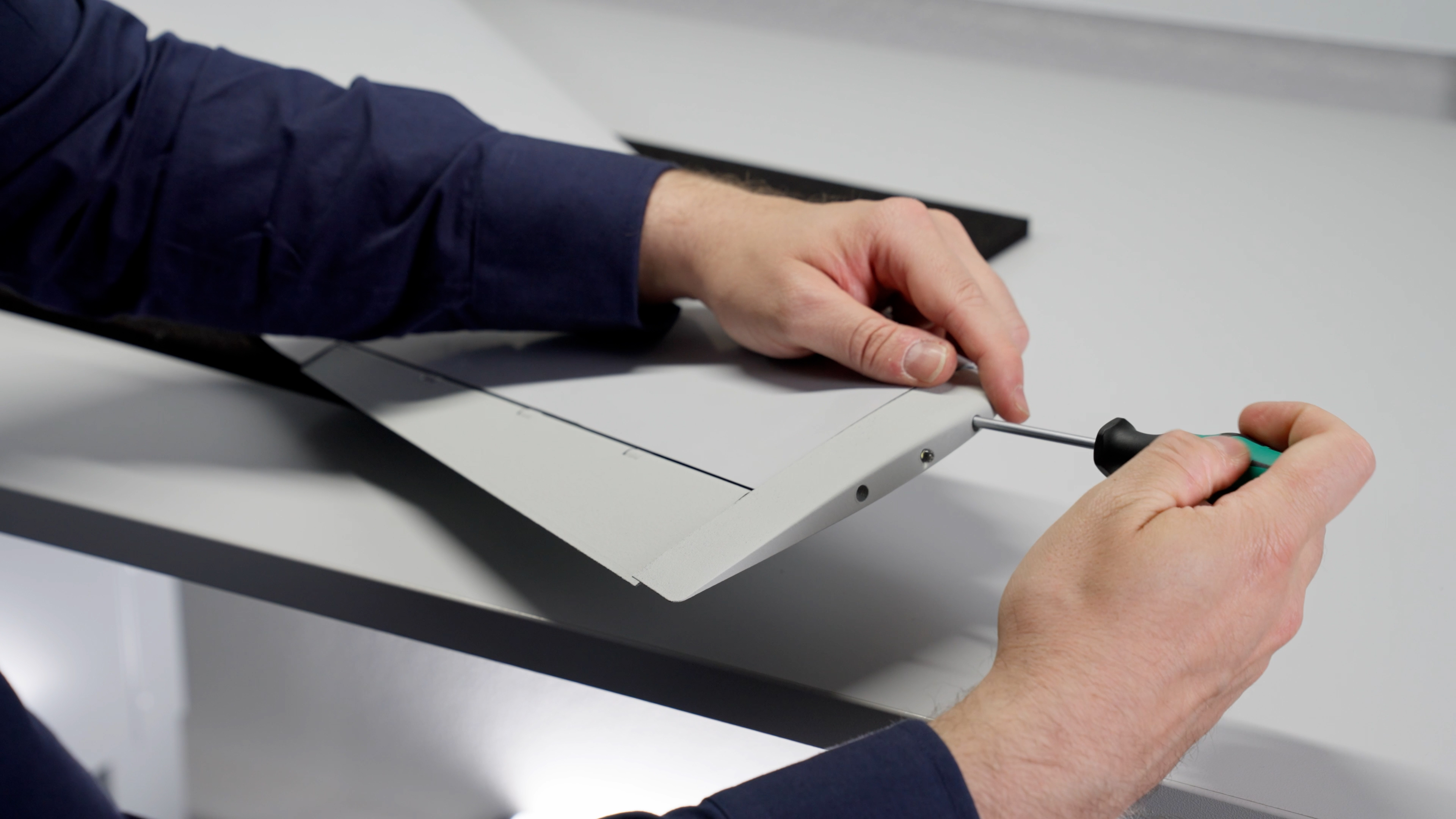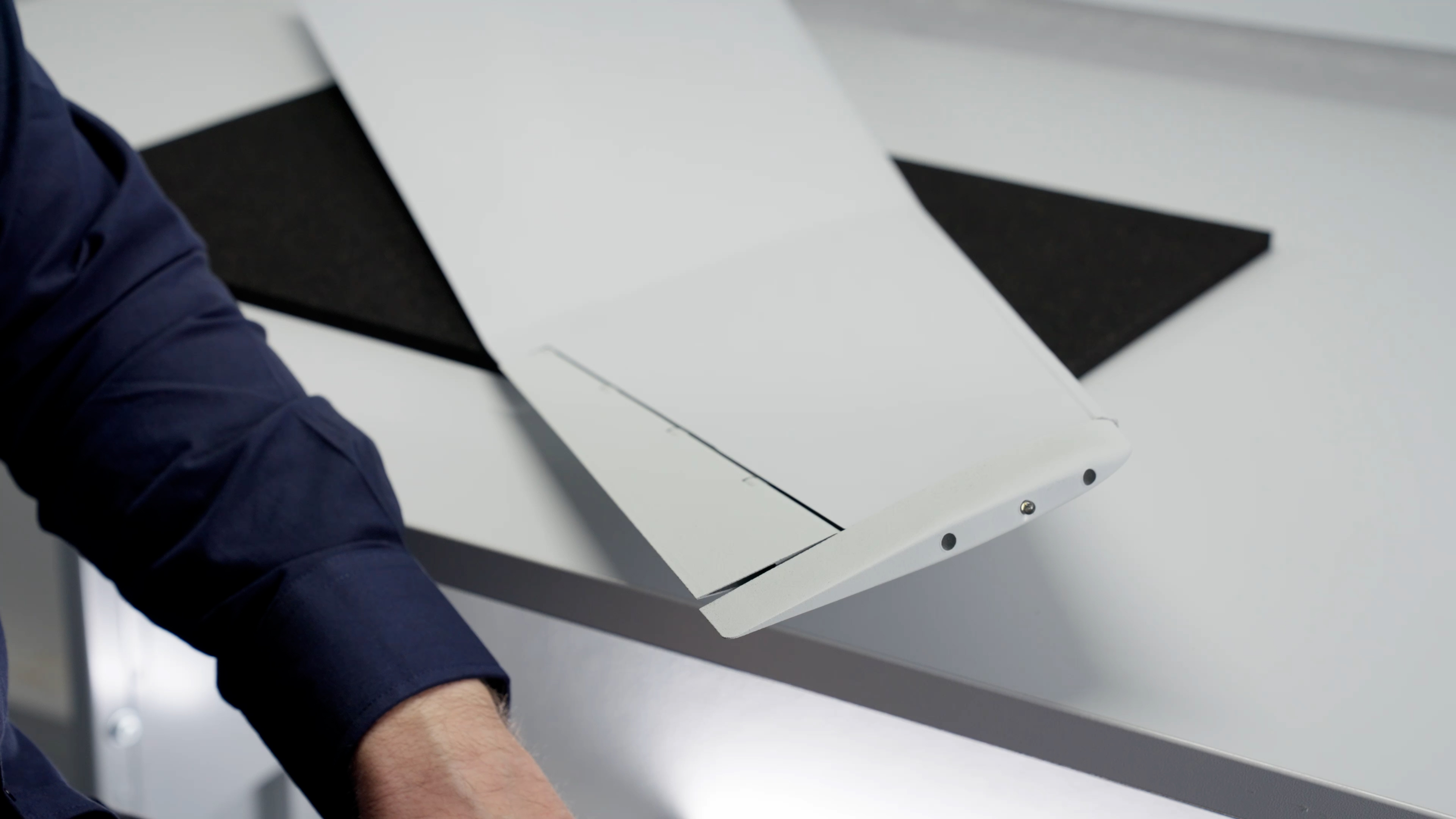 The wingtip is now installed. Ensure that it is securely aligned and properly set in place. Double-check that all screws are snug but not overtightened to avoid any damage.&#x20;