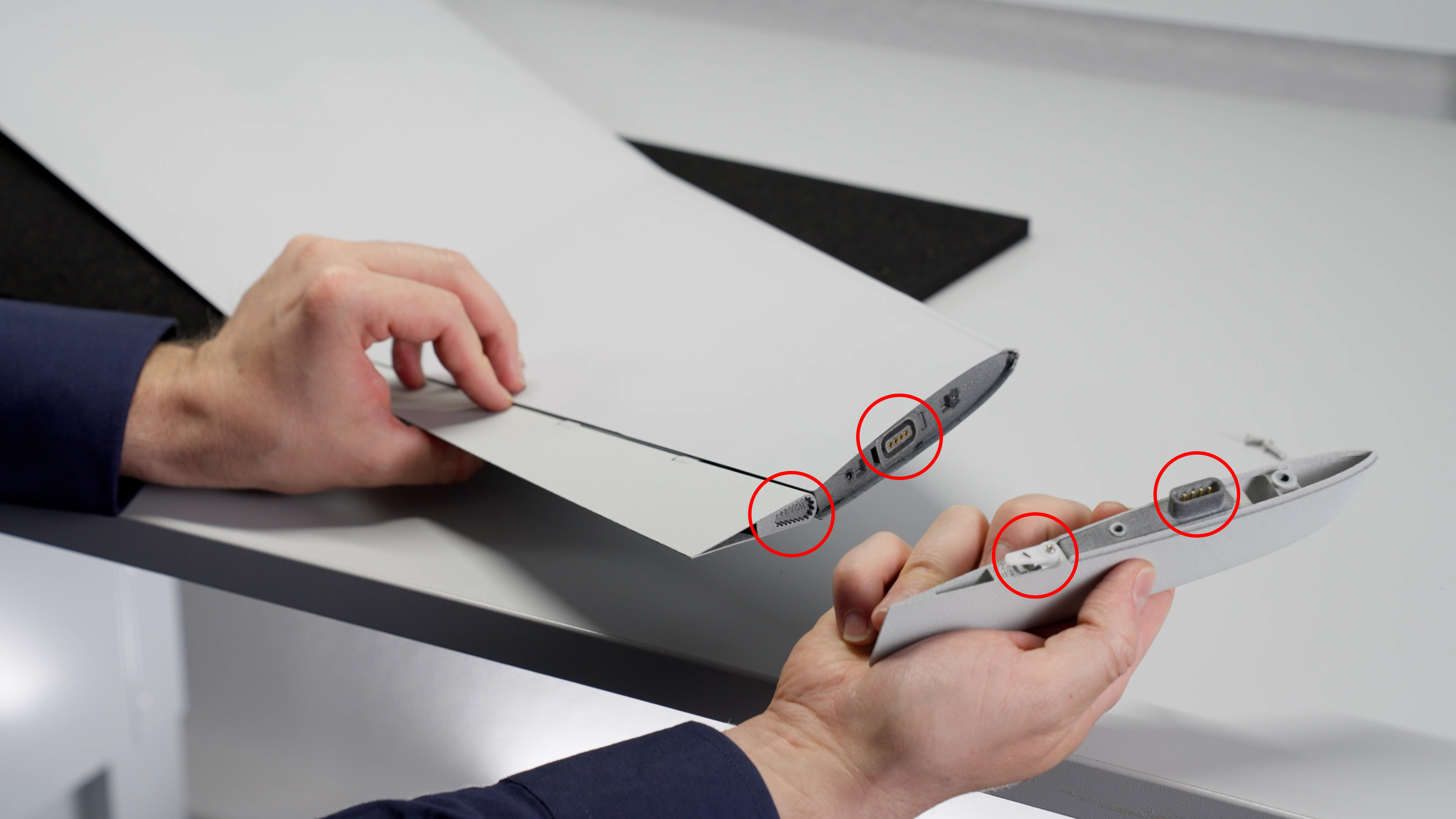 4. Take the new wingtip and attach it to the wing by aligning the connectors and servo arm with the mounting hole on the side of the elevon.