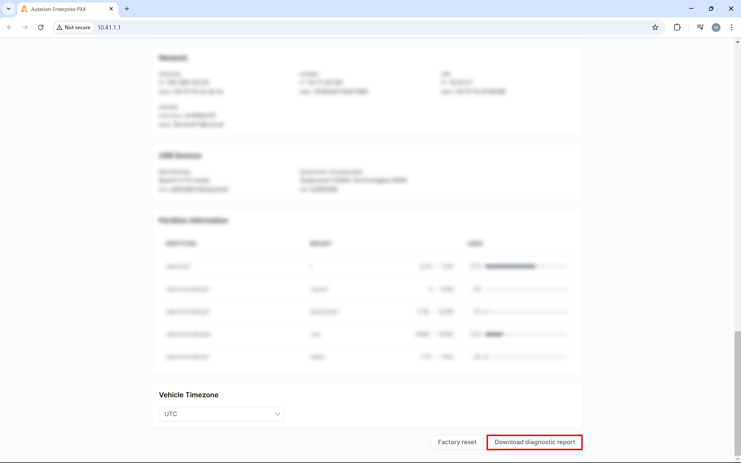 7. In the right corner at the bottom of the page click on **Download diagnostic report**. The report will be generated.
