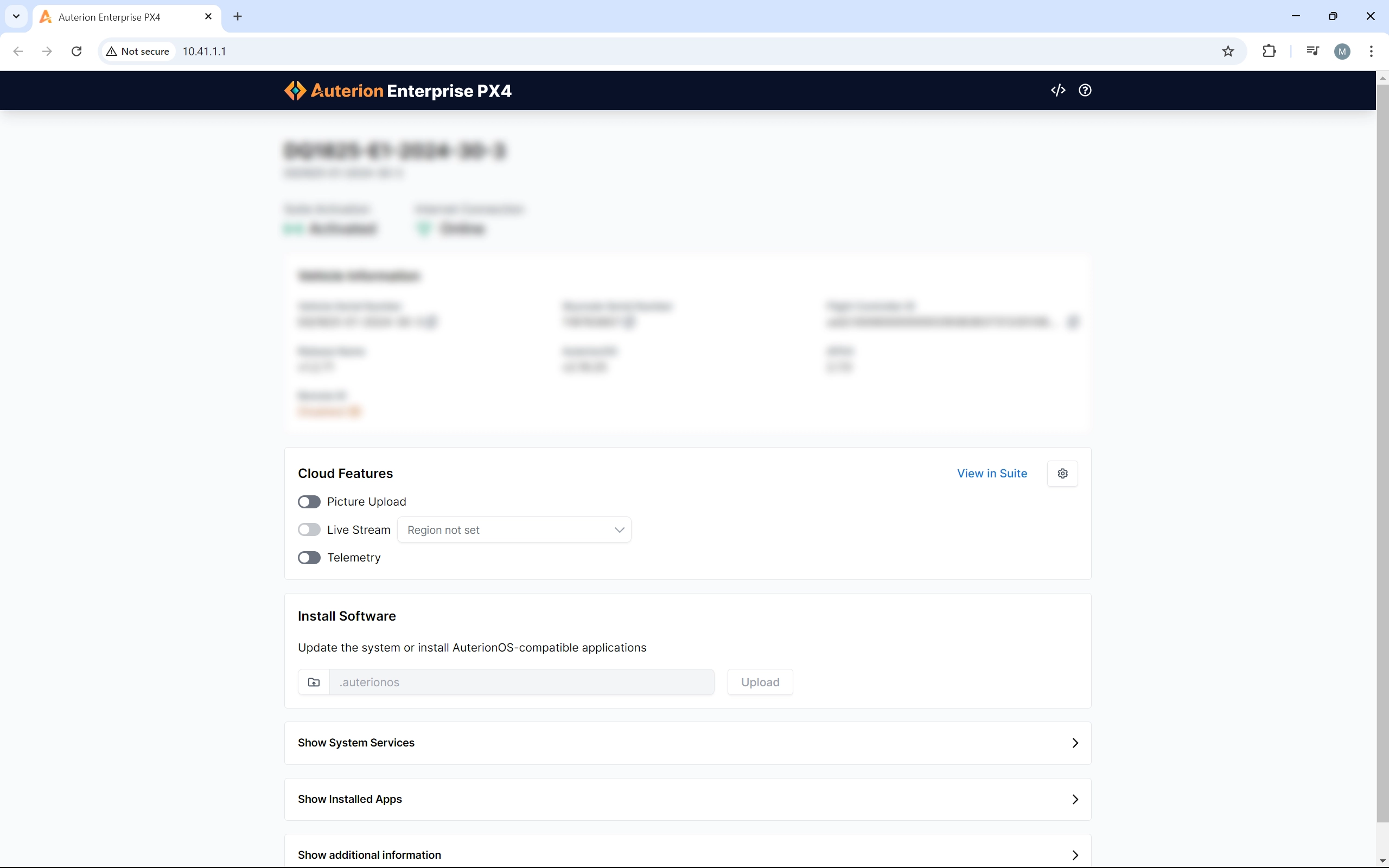 5. On the laptop open a browser and type in the following address: **<http://10.41.1.1>**