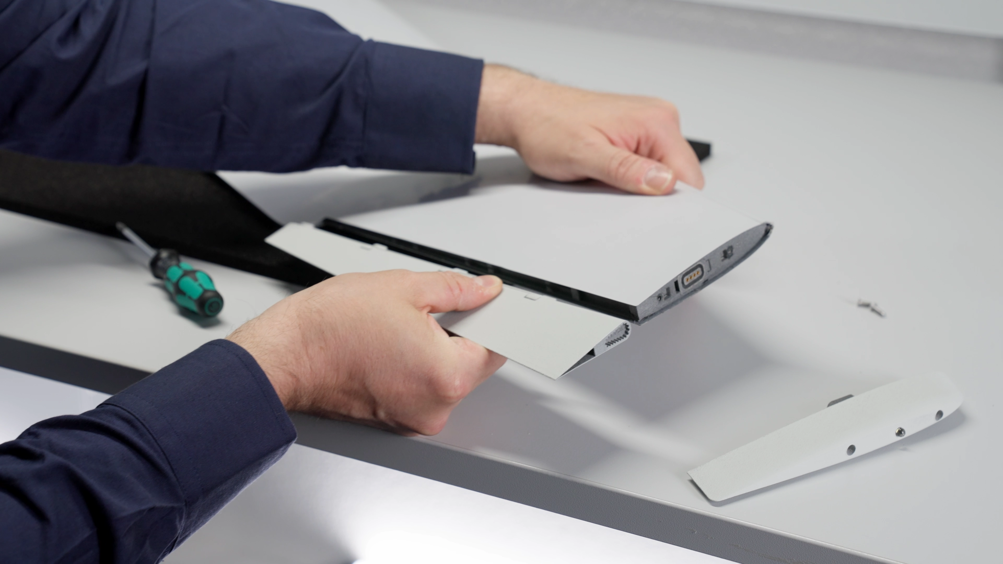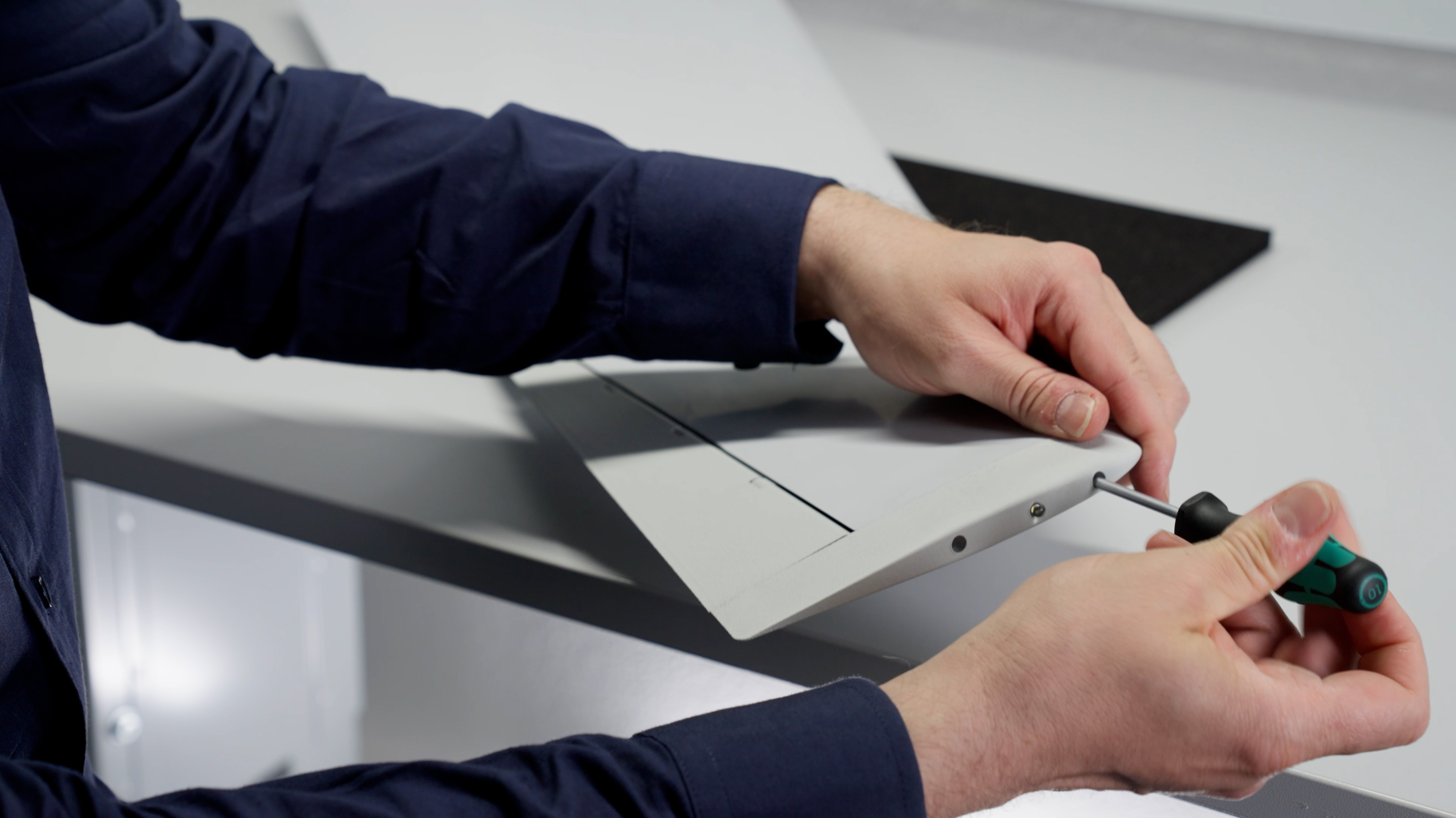 The elevon and the wingtip is now installed. Ensure that it is securely aligned and properly set in place. Double-check that all screws are snug but not overtightened to avoid any damage.&#x20;