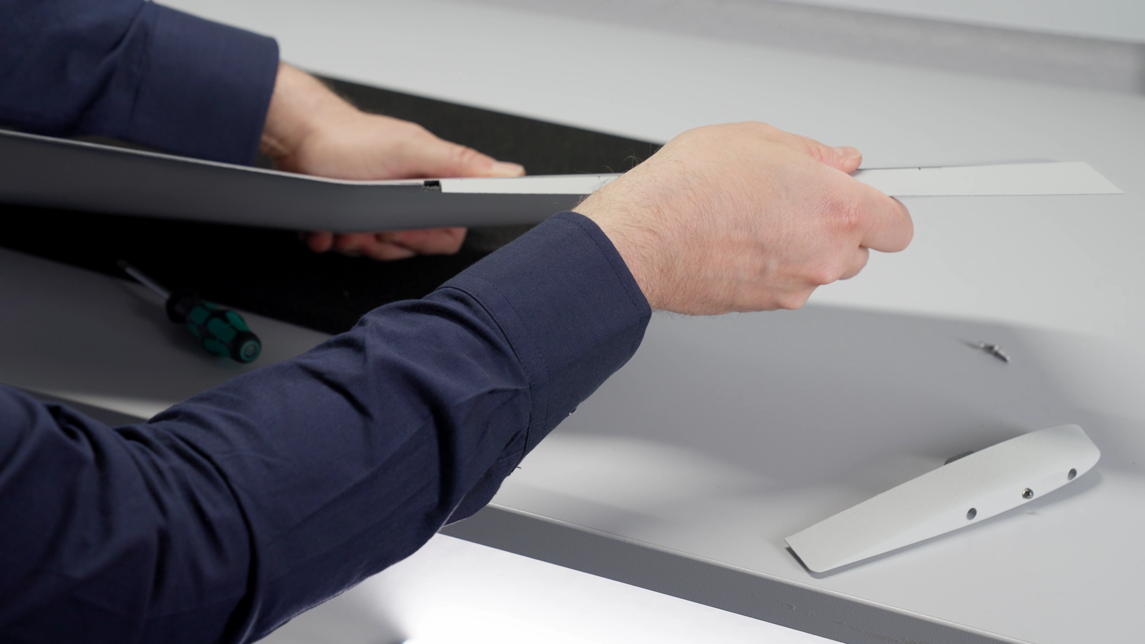 1. Position the wing on a table with the wingtip pointing upward to easily access the two screw holes.