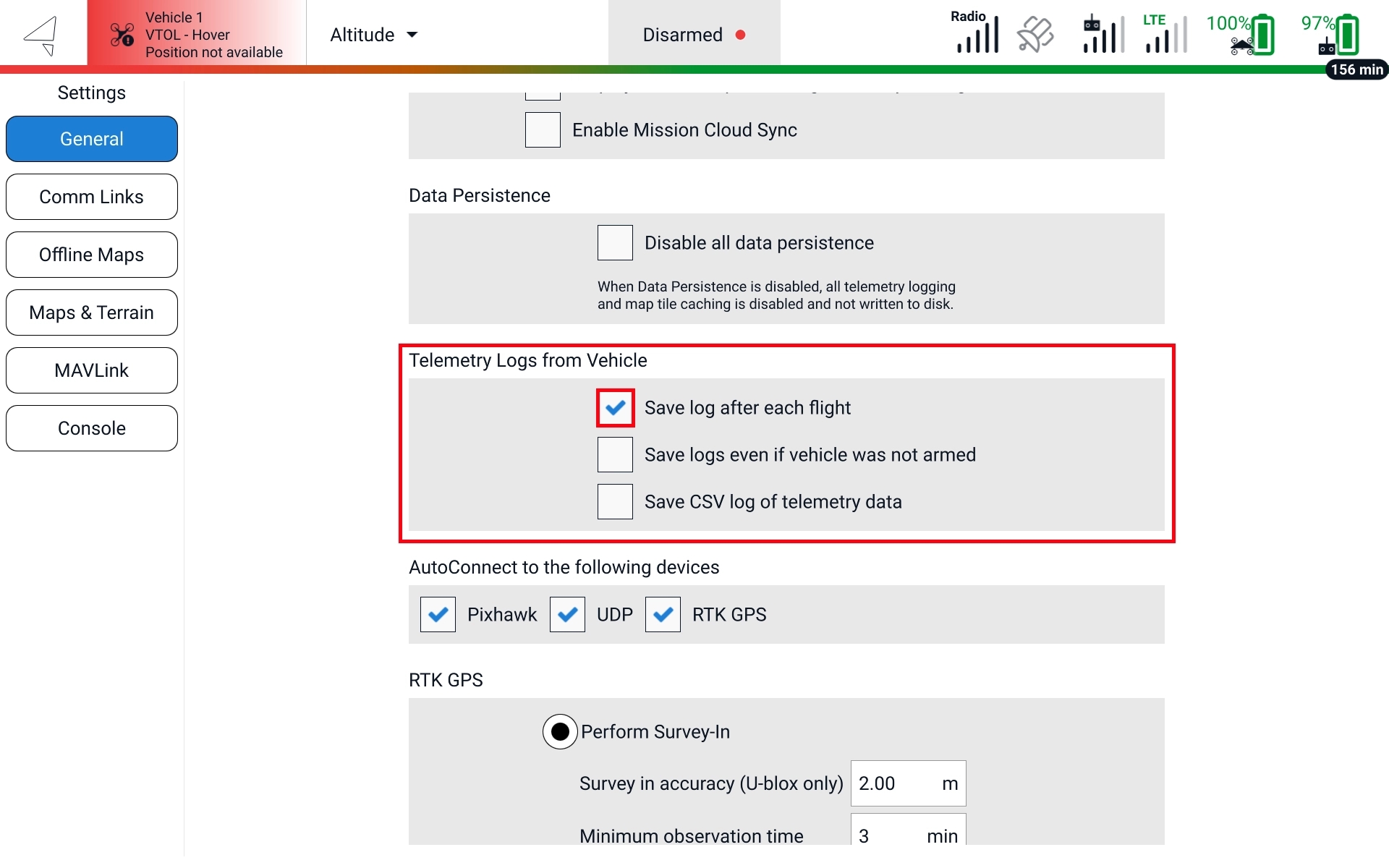 Basic telemetry logging in AMC is enabled by default. To disable it, open AMC, go to AMC Menu -> Settings -> General. Under Telemetry Logs from Vehicle disable Save log after each flight.