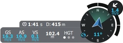 If there is an airspeed error due to water, this will show during the front transition after the VTOL takeoff. The standard timeout is 60 seconds, which will bring the vehicle quite far (approximately 800m). During the transition, the pilot can monitor the airspeed to ensure it is increasing as the vehicle begins the front transition. The airspeed is displayed in the Telemetry Dashboard, in the lower right corner of the Fly View. AS displays the airspeed.