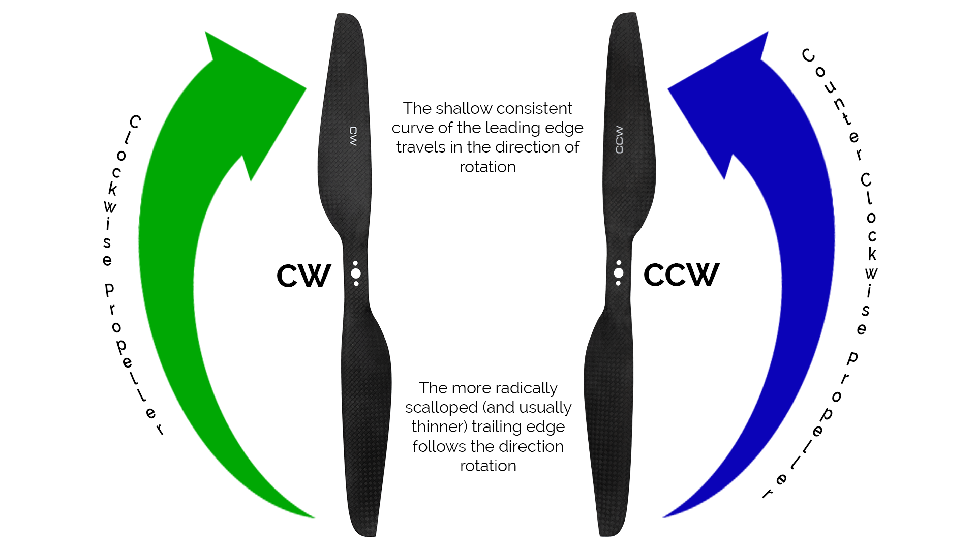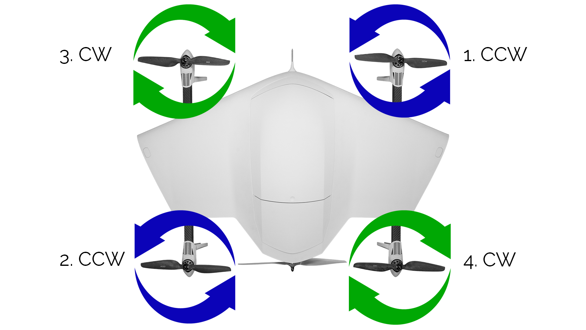 The VTOL propellers include 2 Clockwise (CW) propellers and 2 Counterclockwise (CCW) propellers.