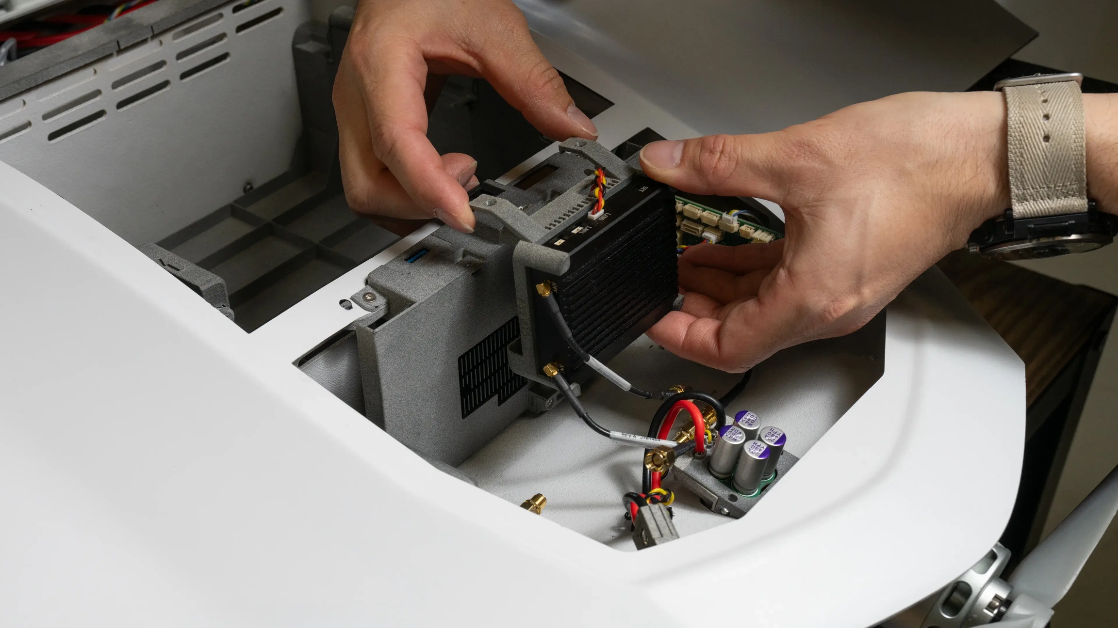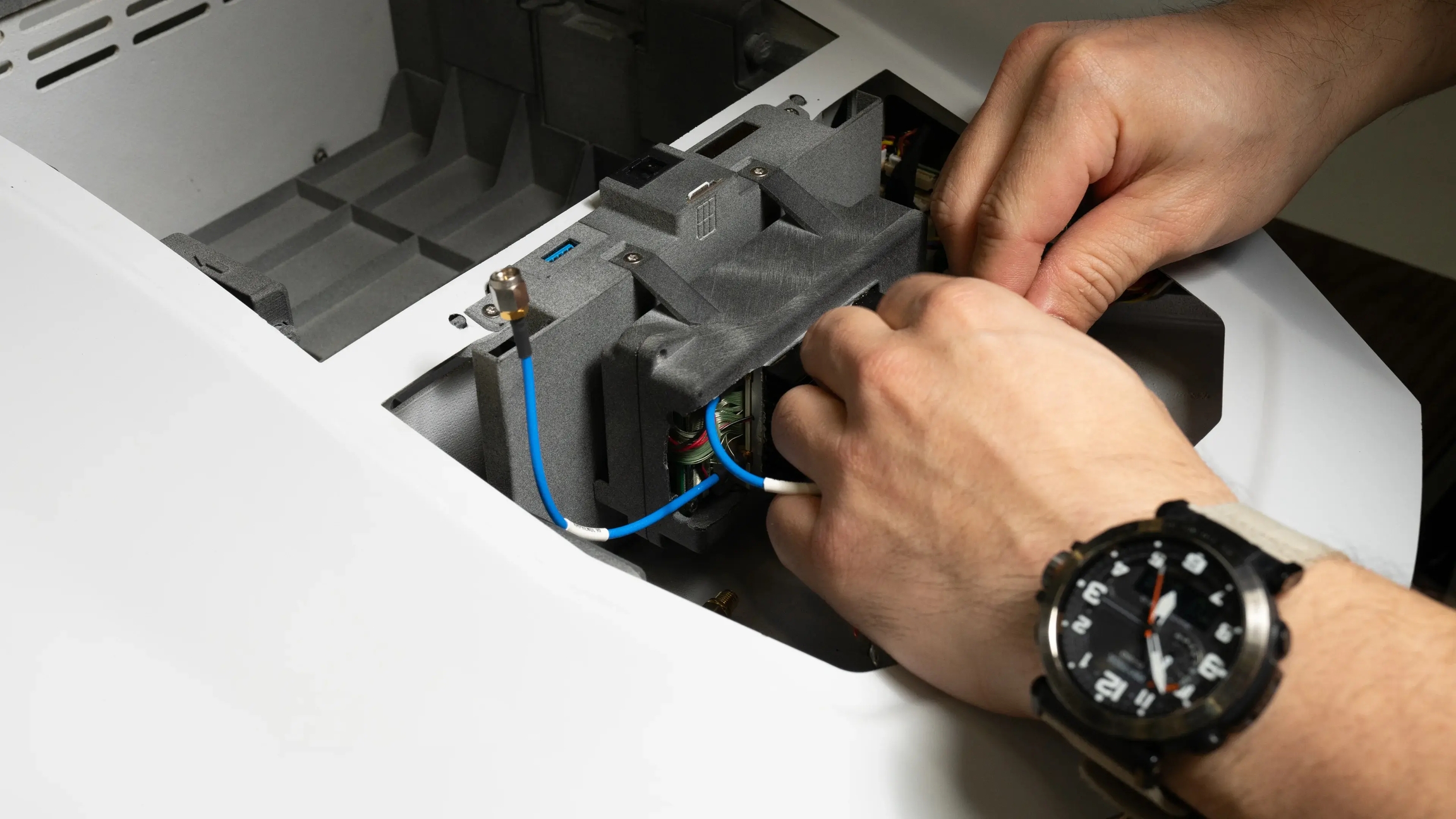 Install the new air unit by following the steps above in reverse order. Connect the new air unit to the FMU by sliding it downwards onto the FMU. Reconnect the two SMA antenna connectors.