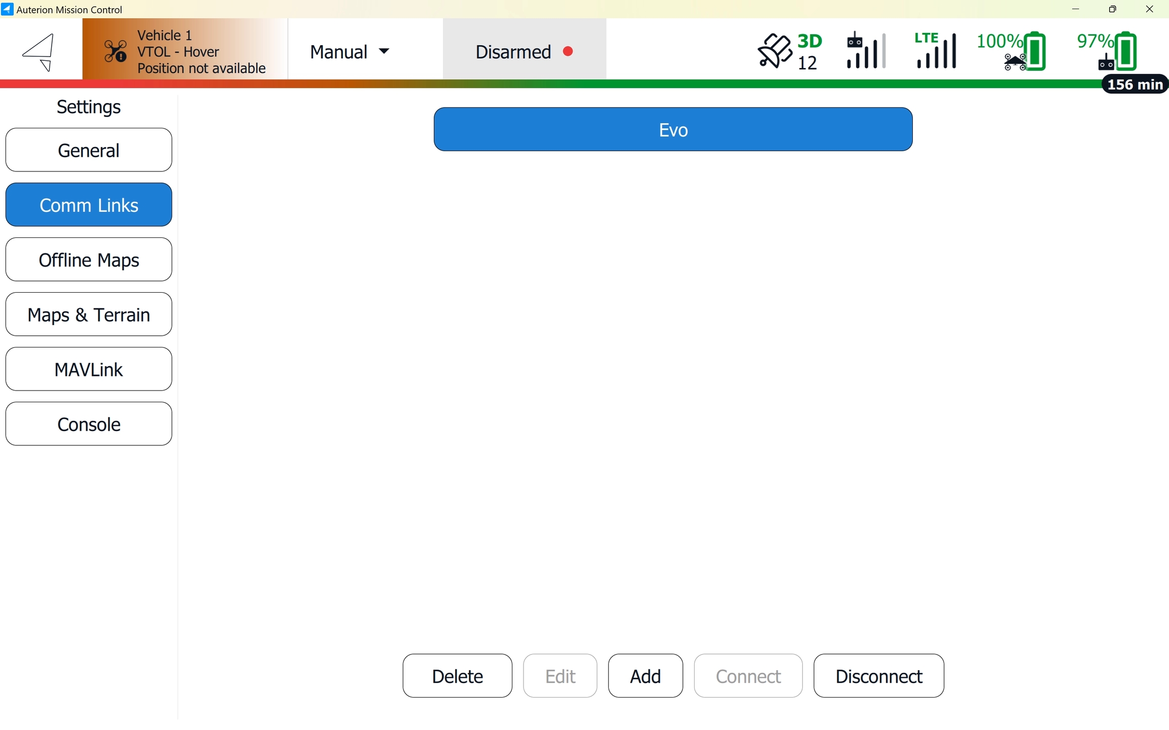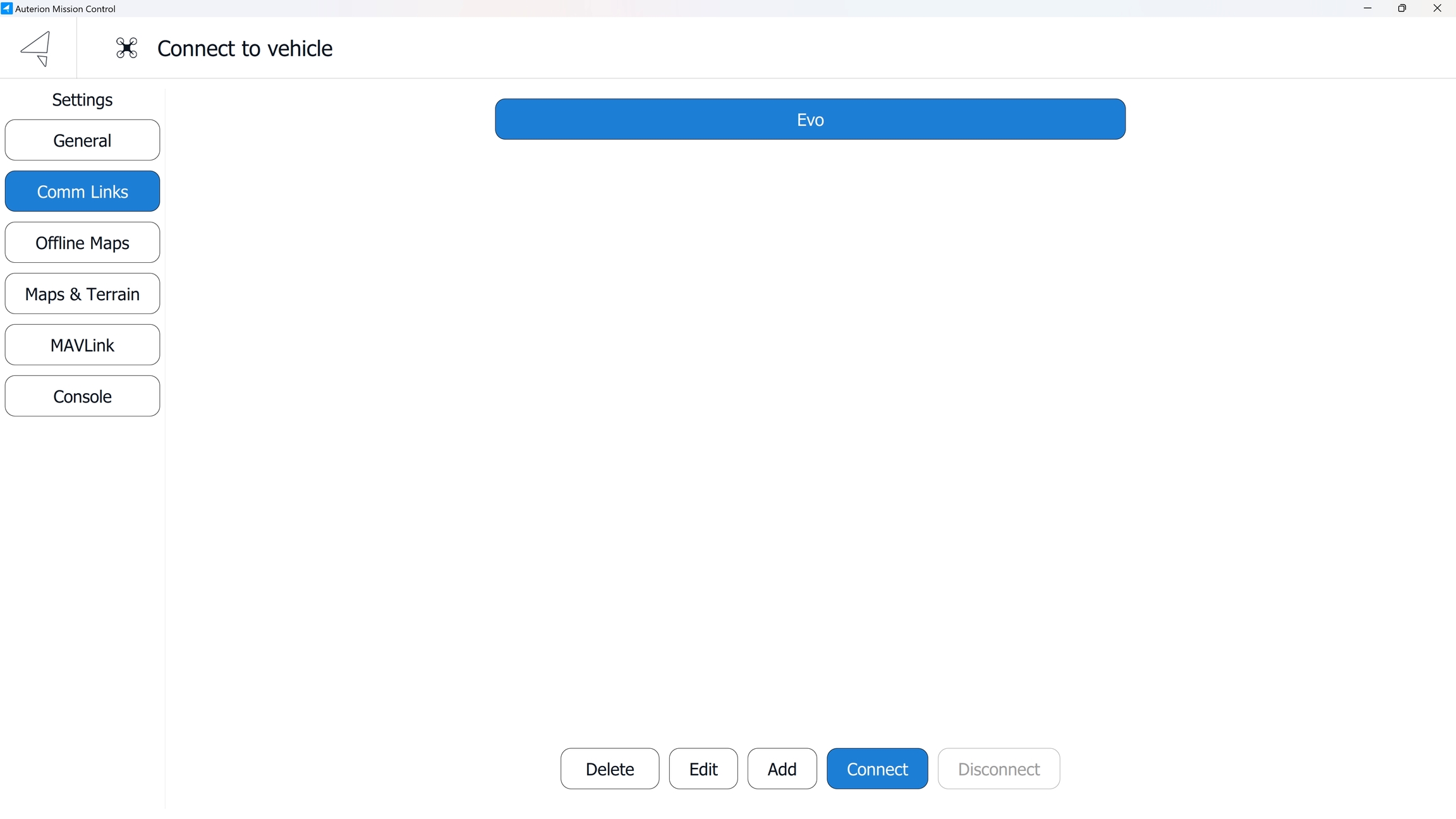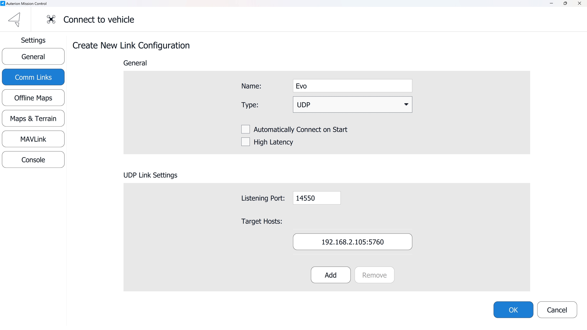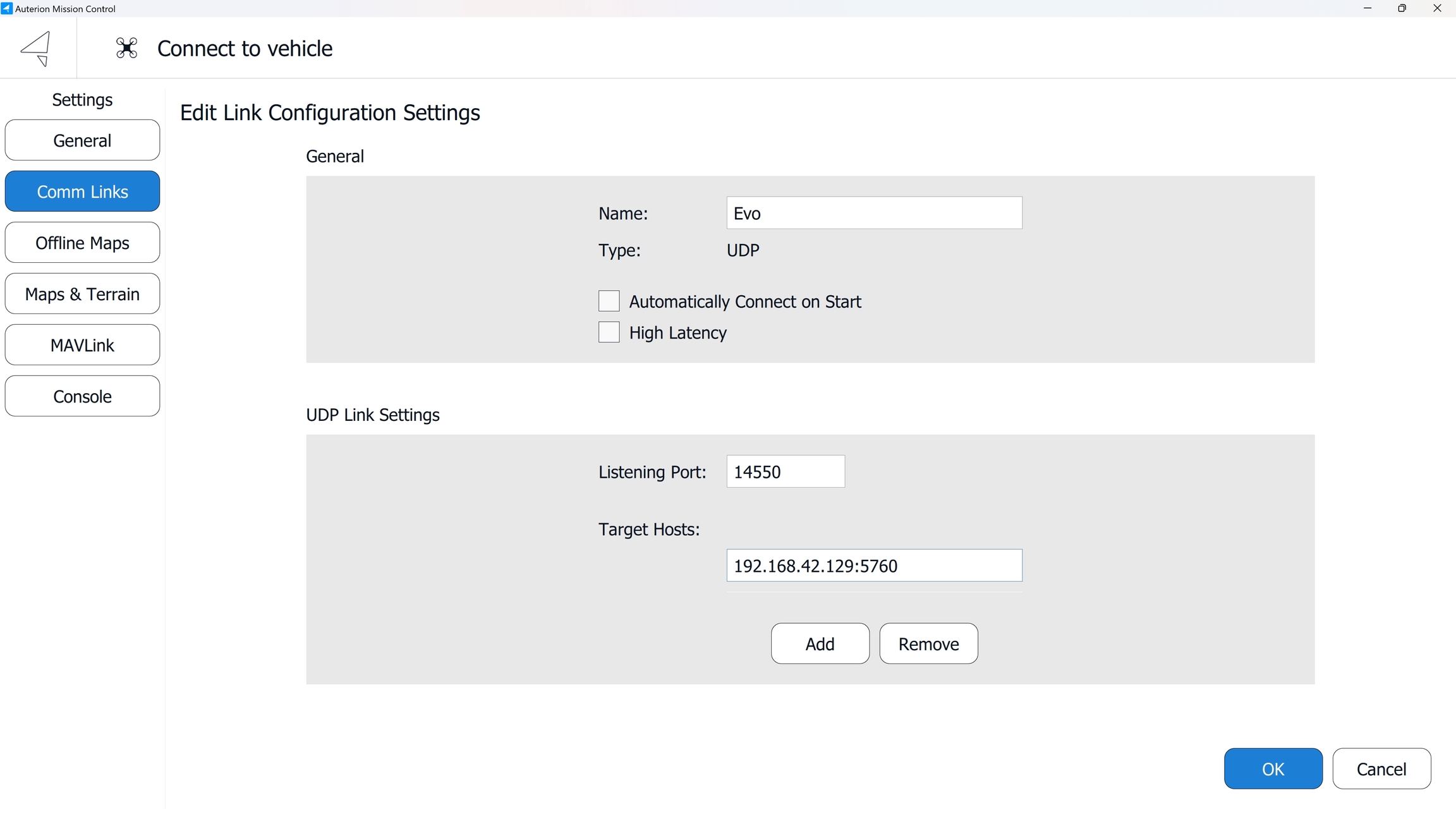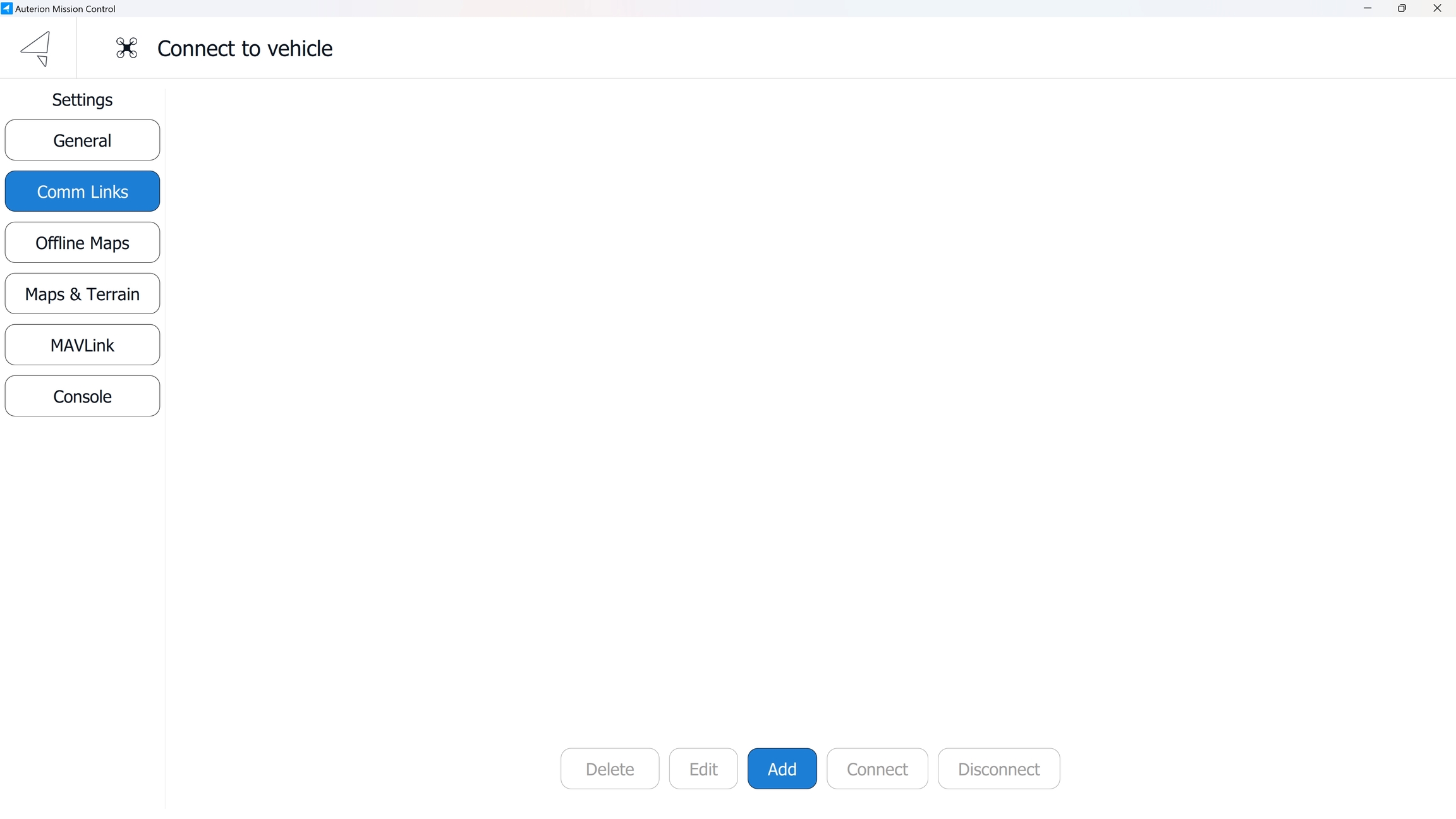 On the secondary GCS, open AMC. Navigate to AMC Menu > Settings > Comm Links. Click on Add.