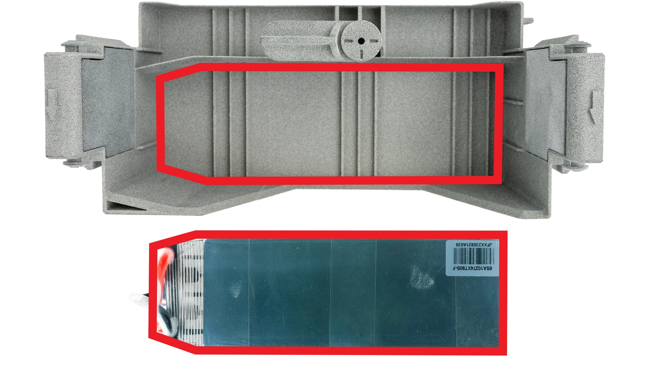 Similar to the main battery tray, the auxiliary battery holder is shaped to match the bottom plate of the battery.
