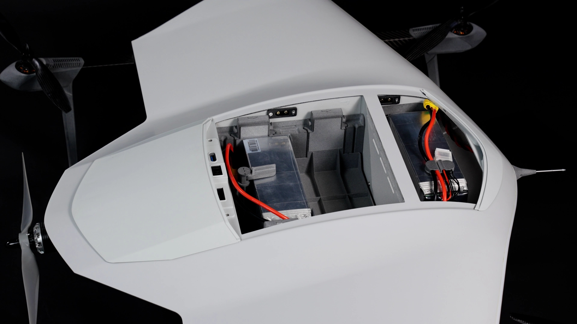 Every DeltaQuad Evo includes an auxiliary battery payload box.